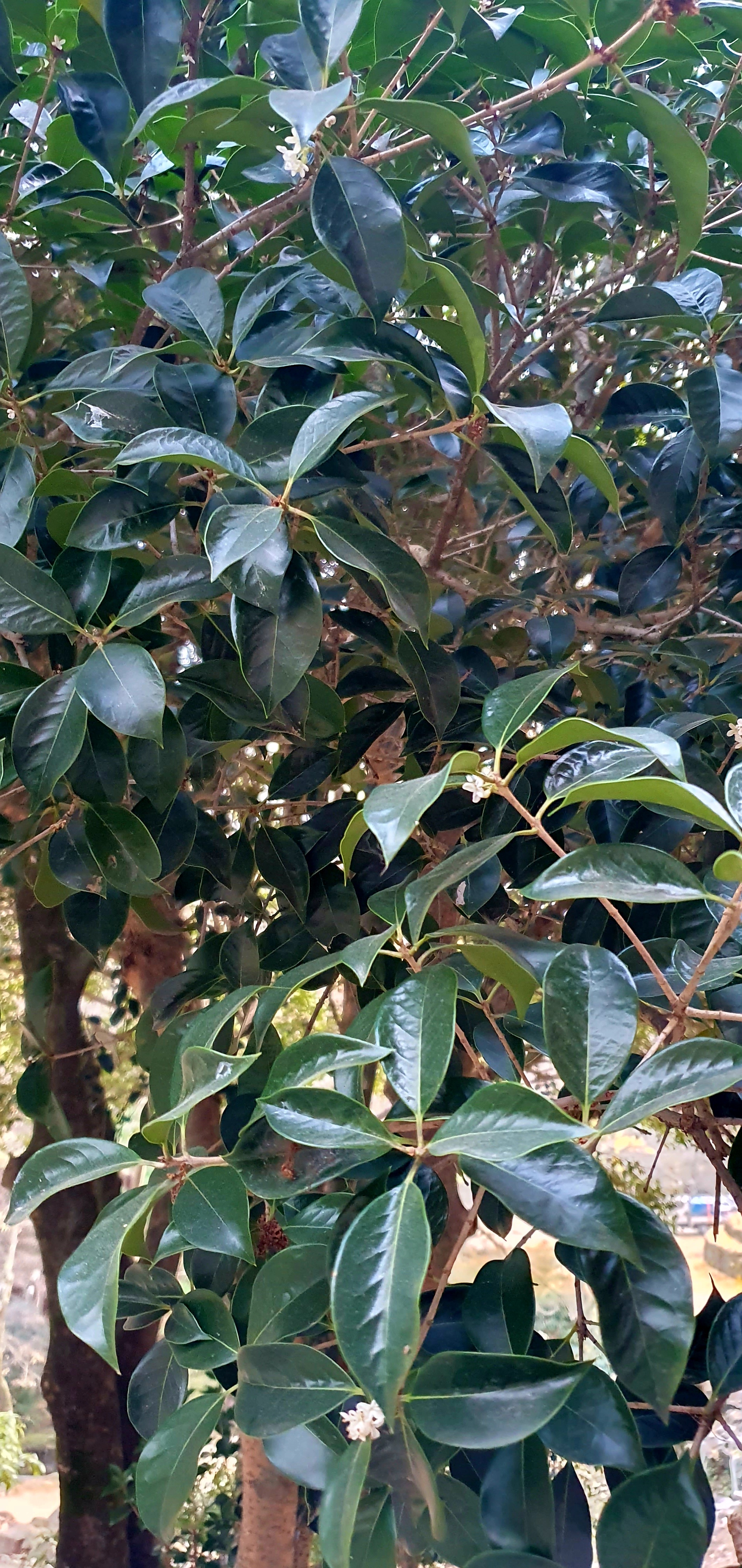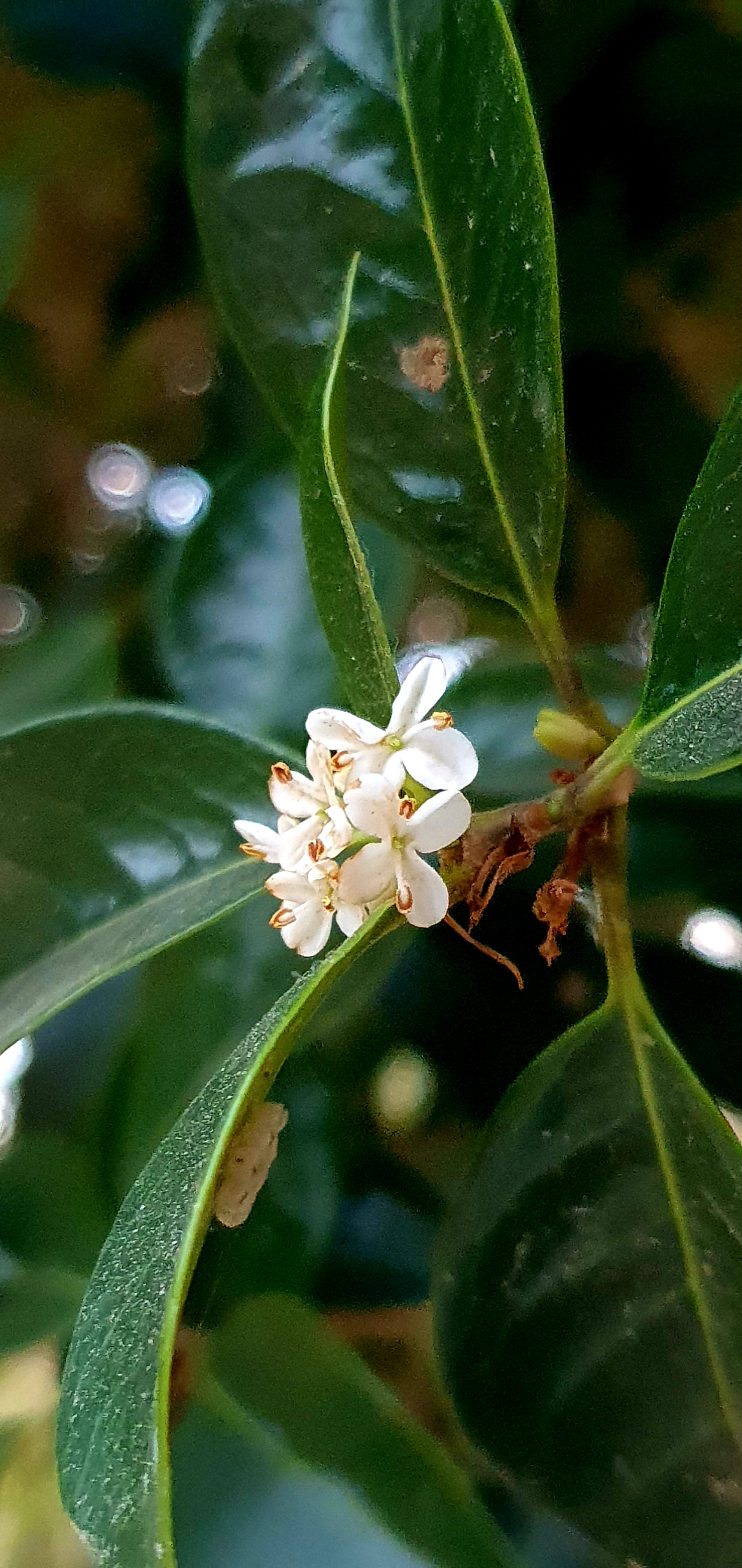 ▲ 수줍게 잎 들 사이에 숨어서 하얀 꽃을 피우고 있는 은목서. 은목서가 이렇게 많은 곳도 흔치 않을 것이다.