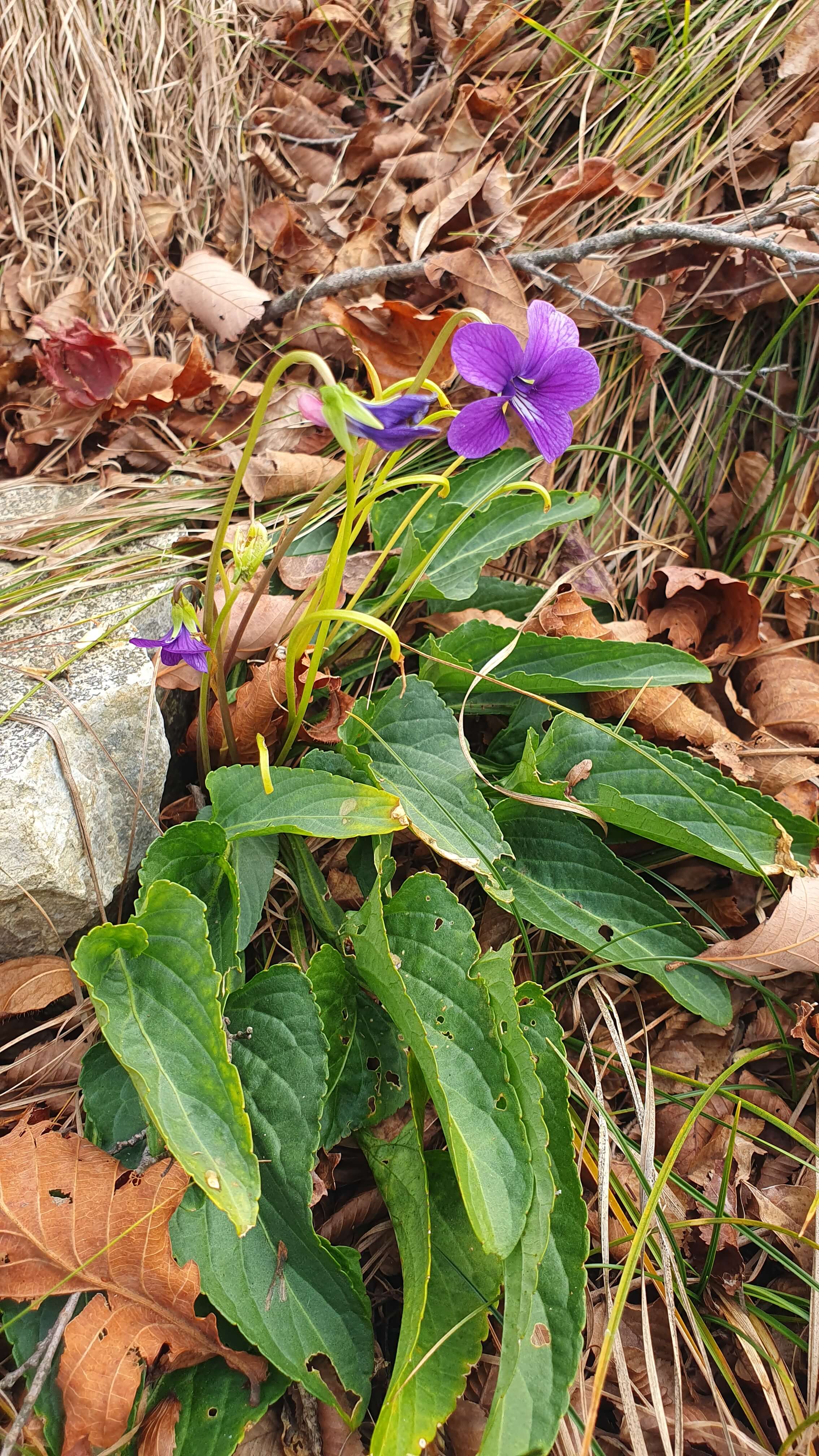 ▲ 늦가을에 만난 제비꽃이 반갑다. 제비꽃은 봄에 피는 꽃이다. 그러나 여름과 늦가을까지도 환경 여건이 허락하면 꽃을 피우기도 한다.
