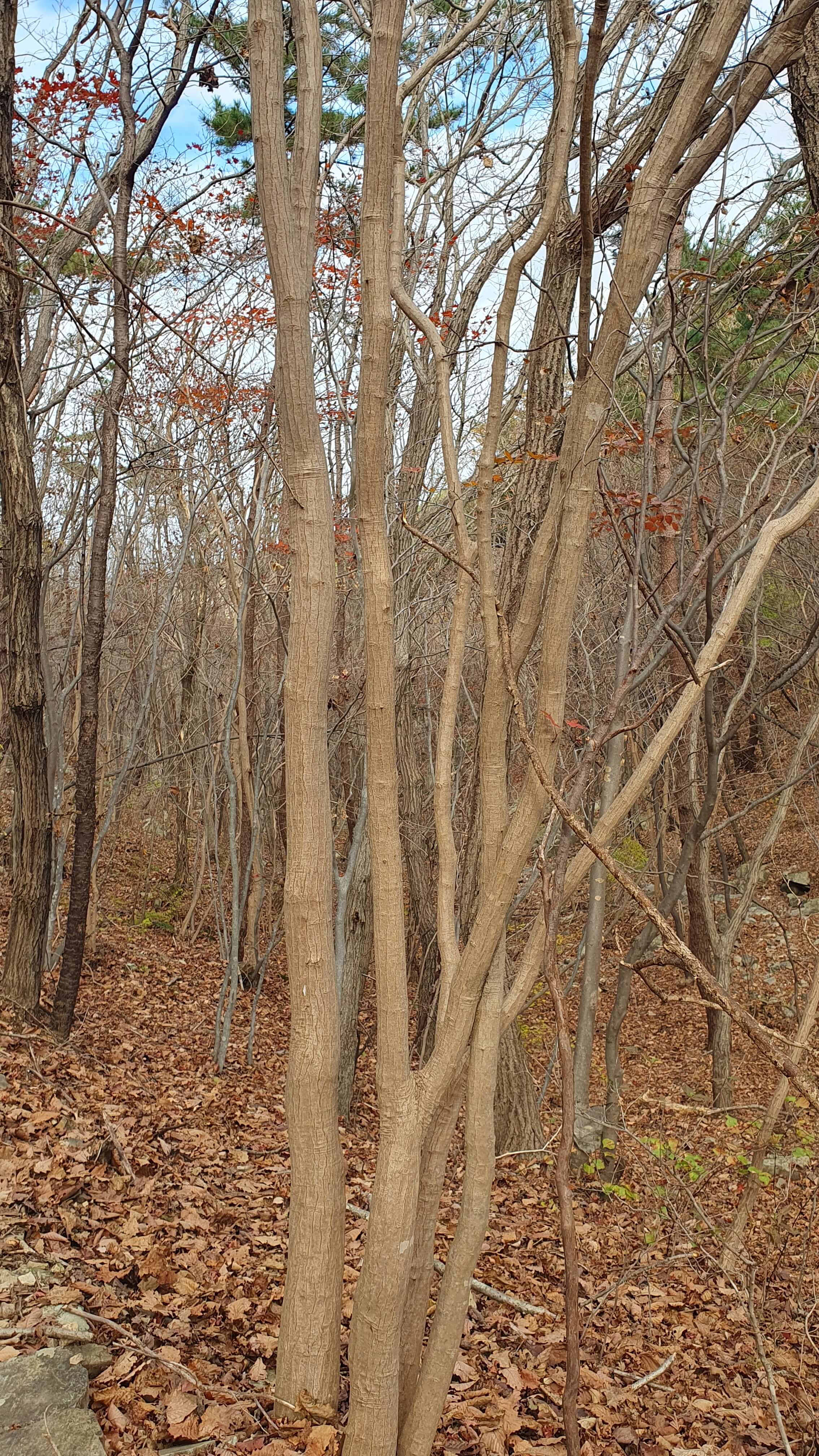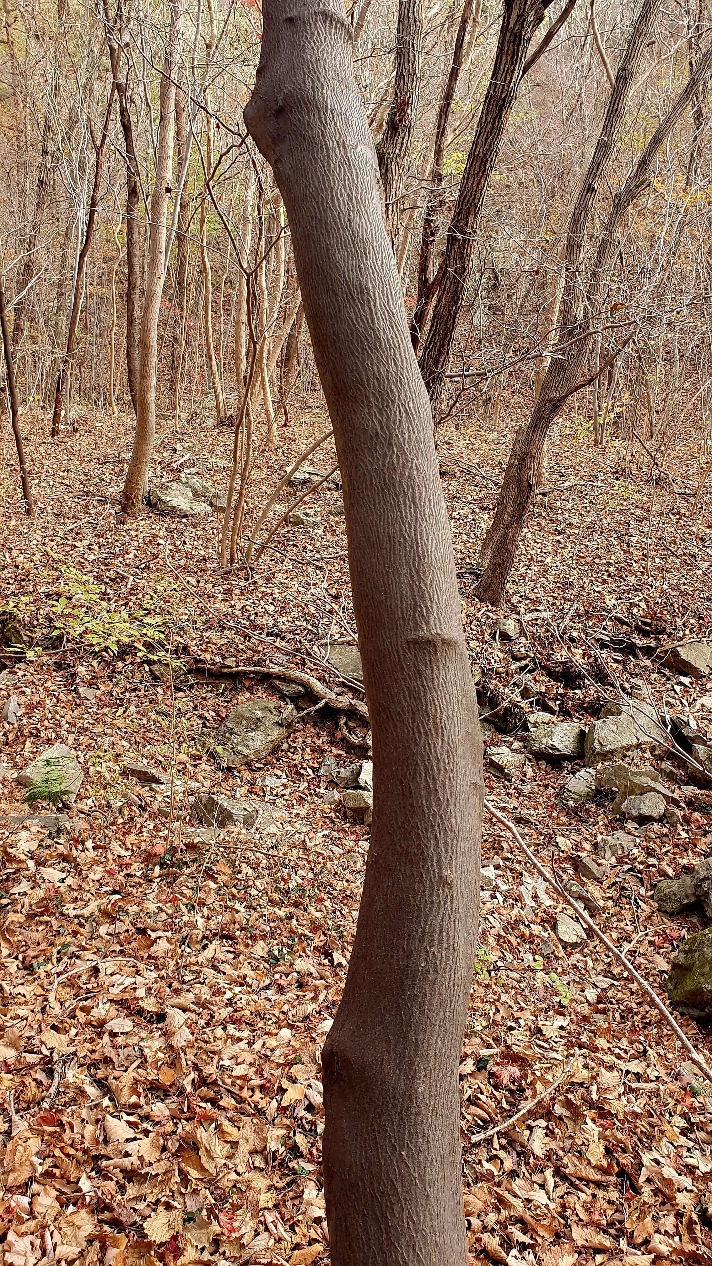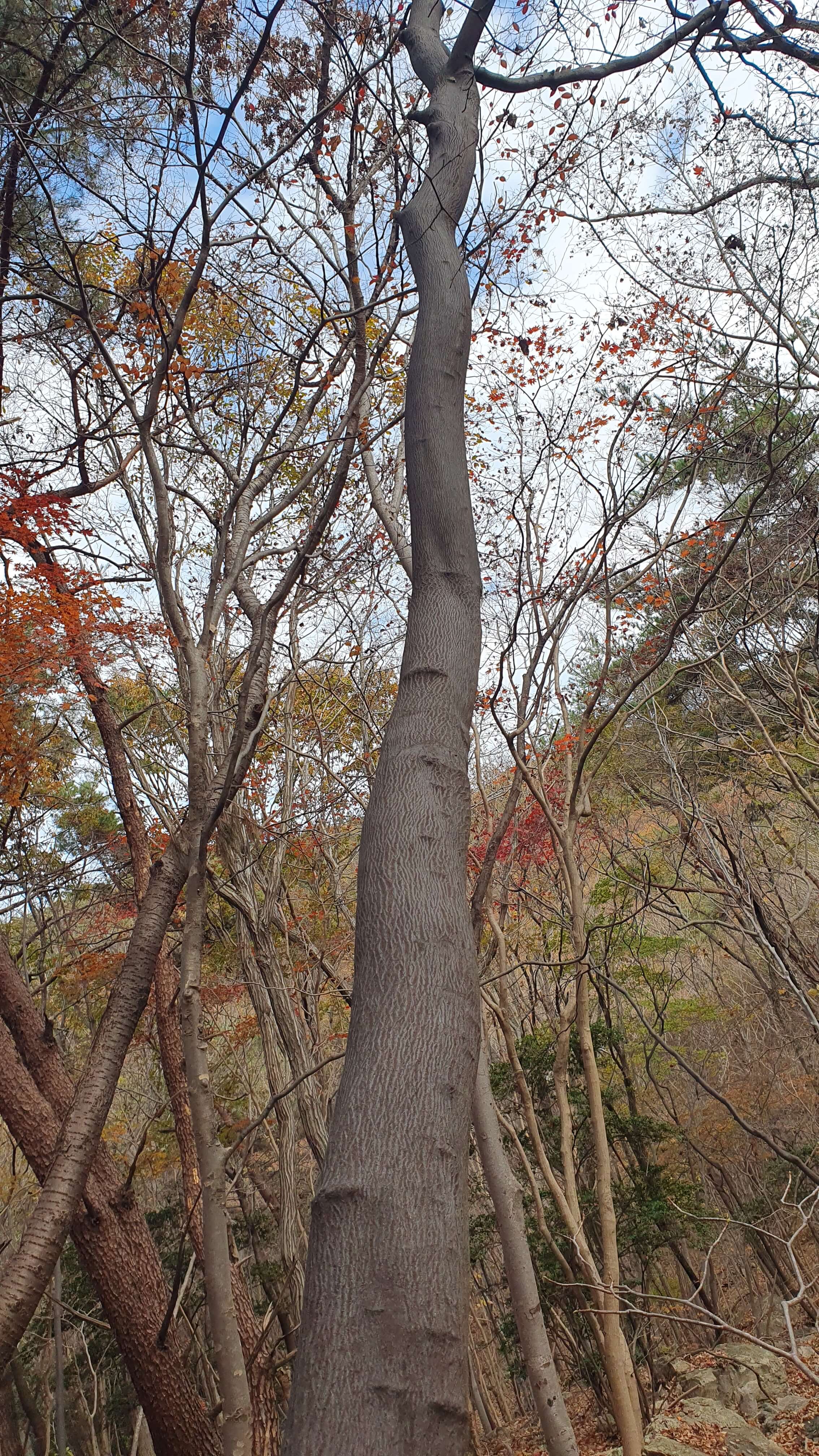 ▼ 하얀색 사람주나무, 검정색 쪽동백나무, 밝은 고동색 단풍나무가 골고루 어울려 있는 숲이다.