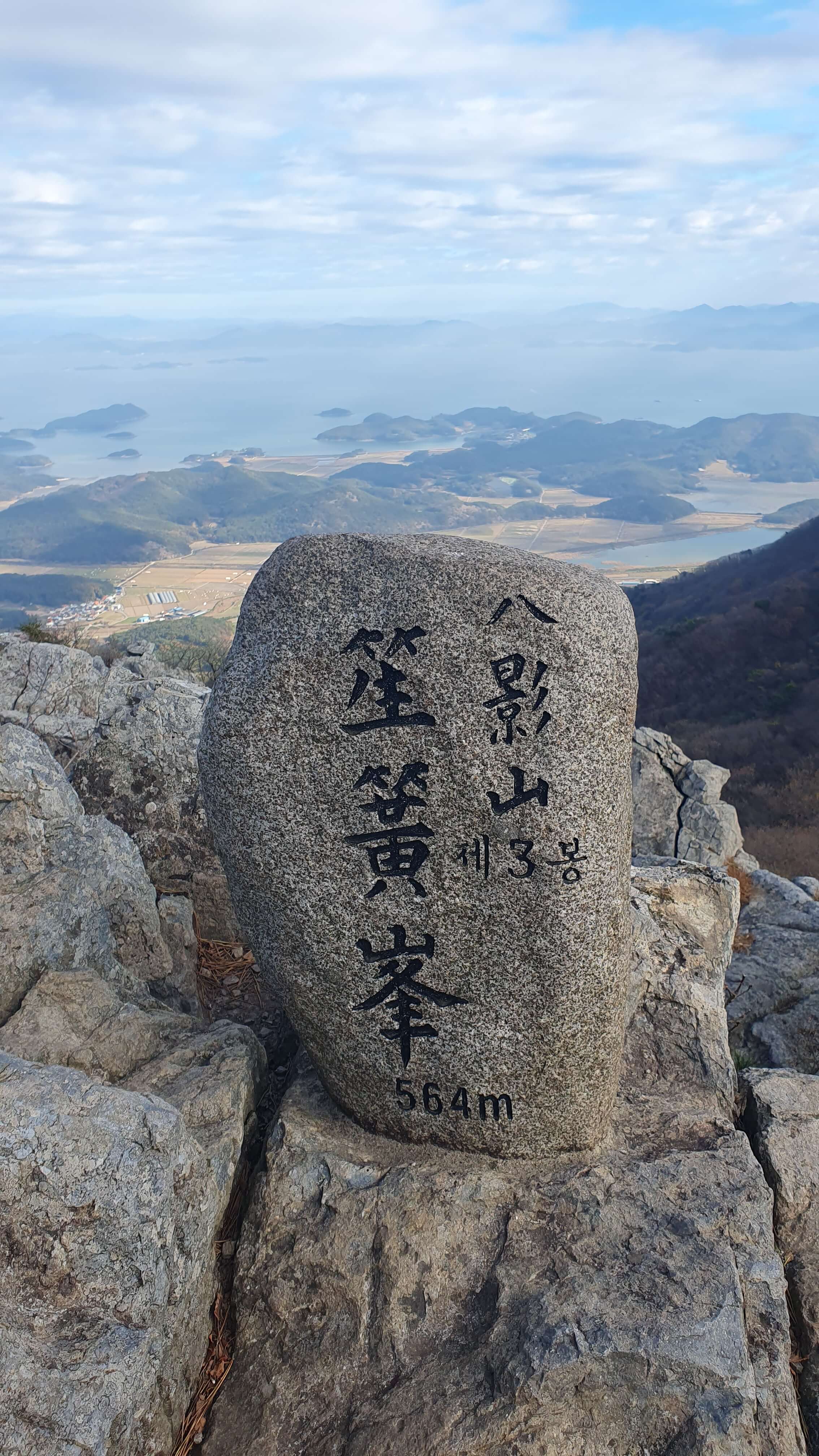 ▲ 성주봉 정상석은 육지 쪽을 배경으로 하고 있다.