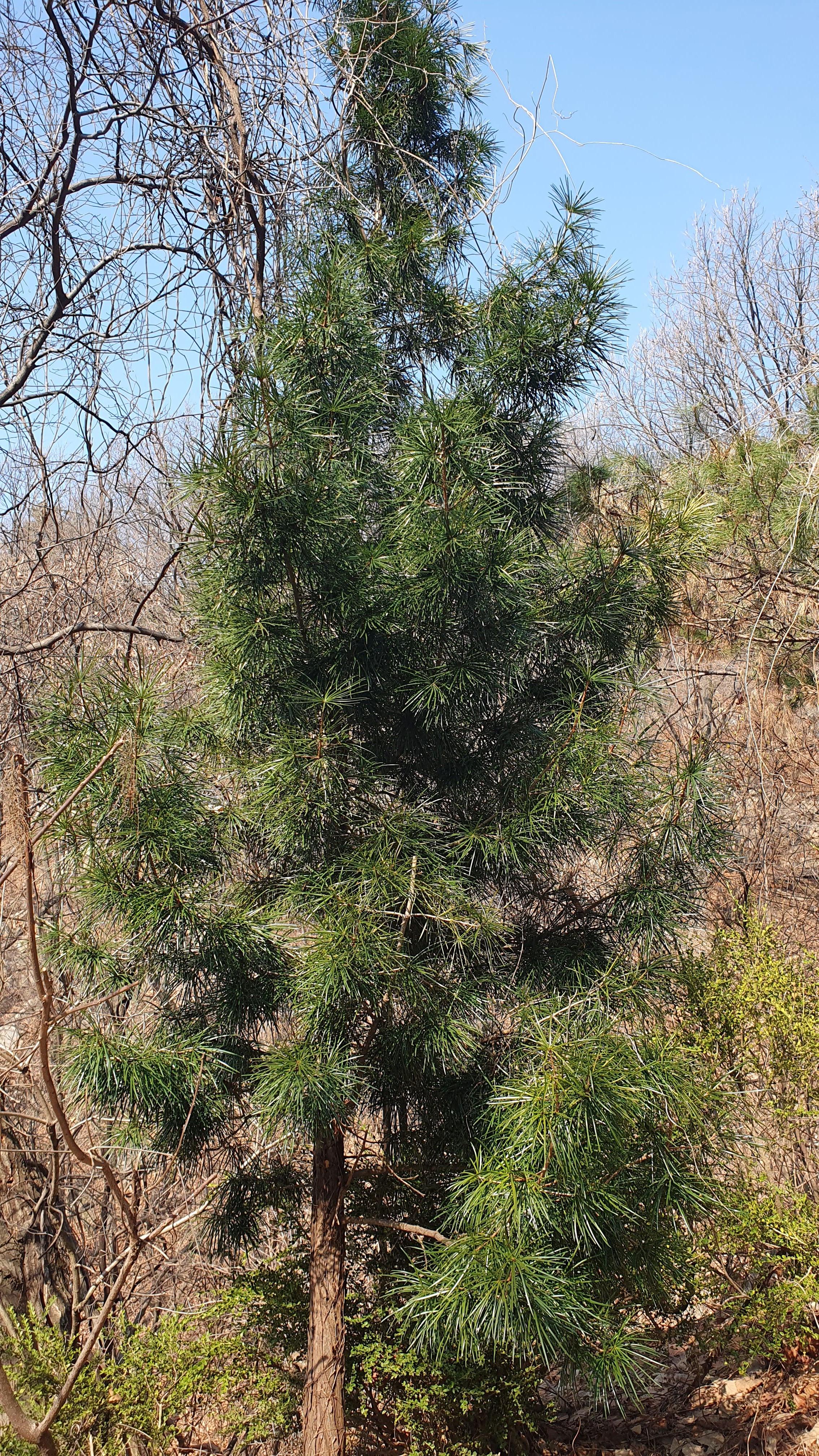 ▲ 백화암 입구 공터 옆에 금송이 무심히 서 있다. 다듬어지지 않은 걸로 봐서 관심과 손길을 못 받는 듯하다. 금송은 소나무강>금송목>금송과>금송속 으로 계통상 소나무와는 완전히 다르고, 금송과의 유일한 종이다. 중생대 이후 근연종이 전 세계에 분포하고 있었으나 모두 멸종되고 금송 1종만 일본에 자생하는 살아있는 화석이라고 한다.