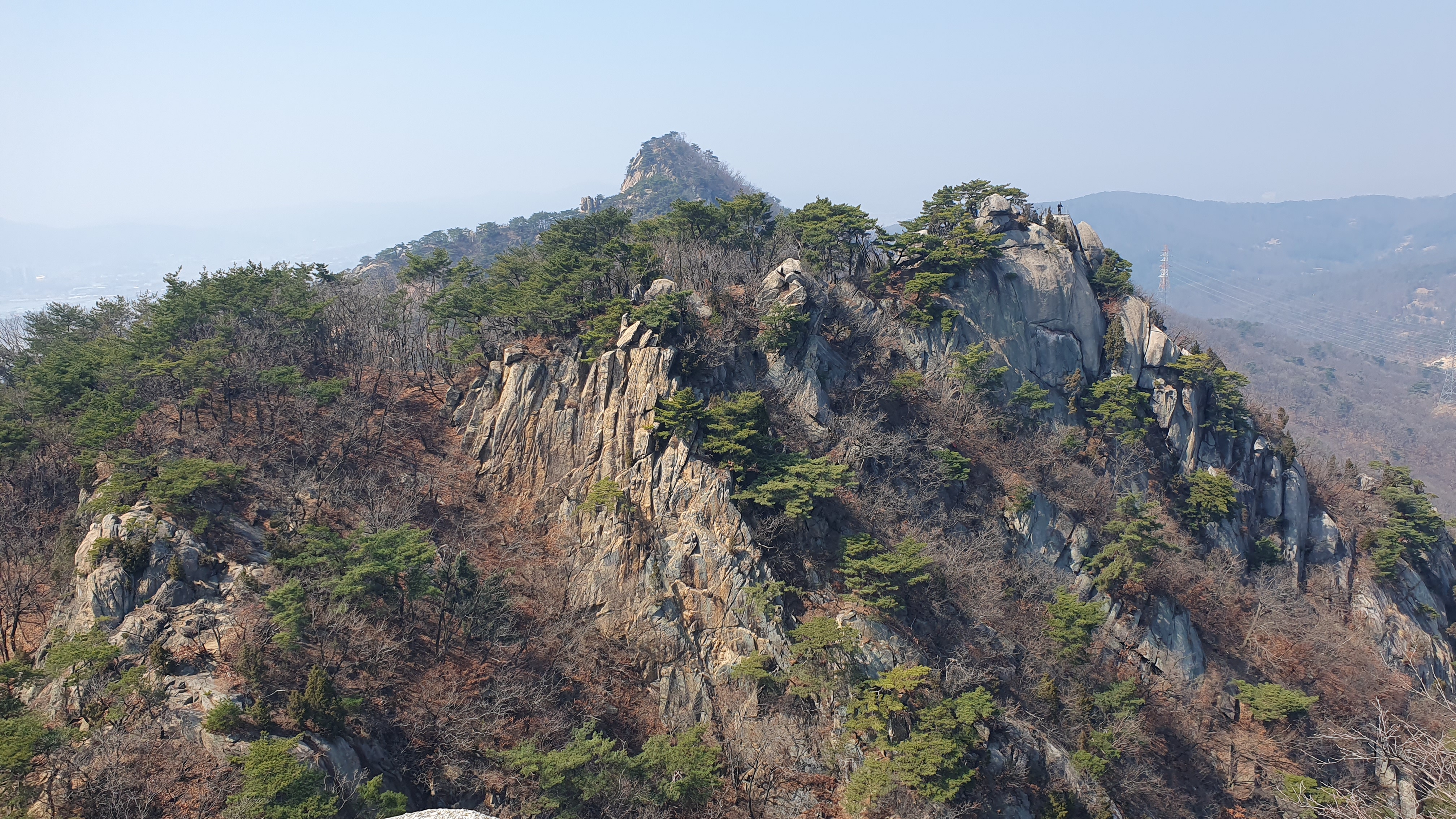 ▲임꺽정봉 아래 경치 좋은 곳에 자리를 잡고 따뜻한 날씨와 멋있는 경치와 함께 점심을 느긋하게 즐긴다. 식사와 커피와 경치를 즐기고 다시 상투봉과 상봉을 거쳐 백화암 원점으로 돌아온다.