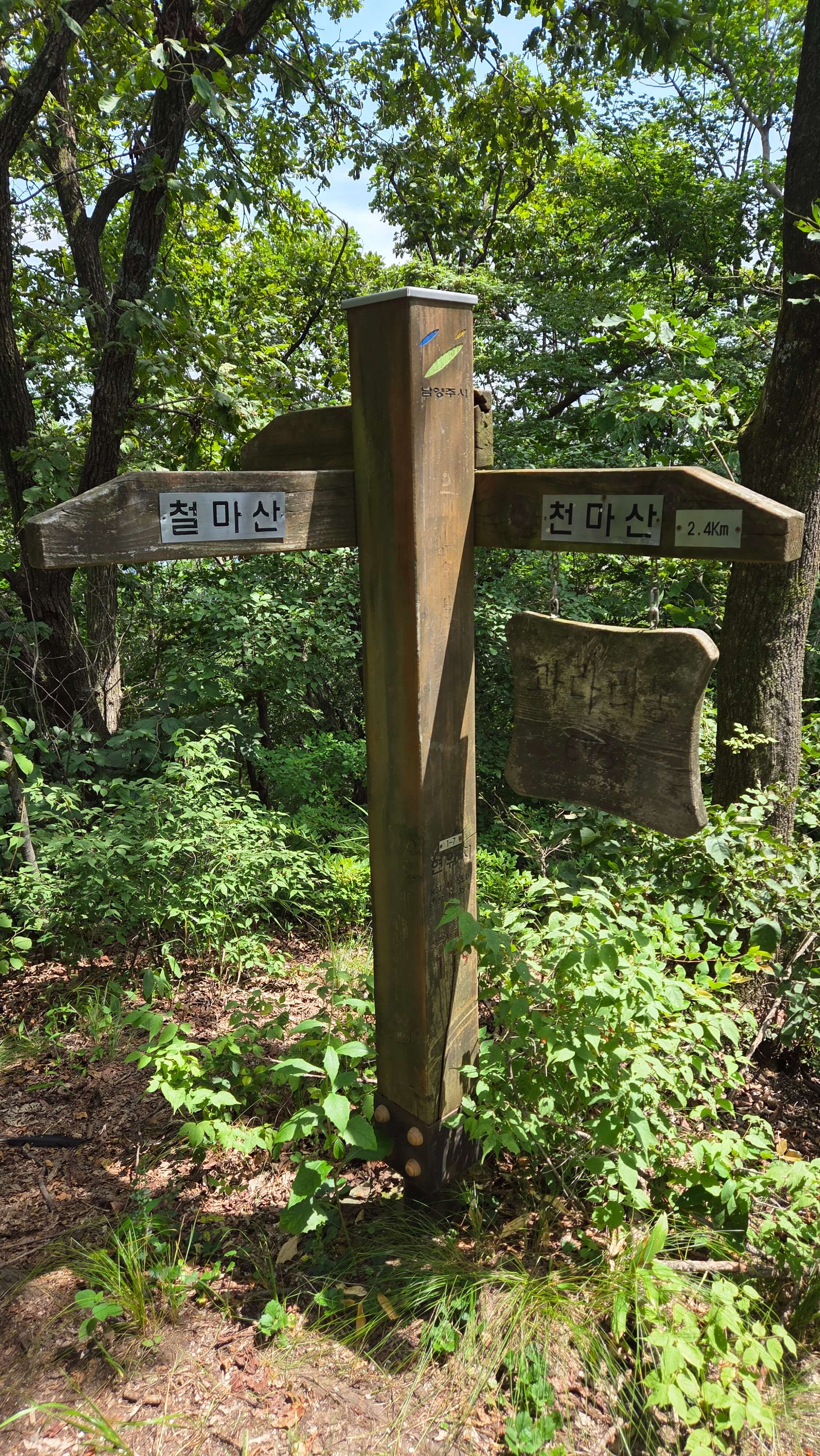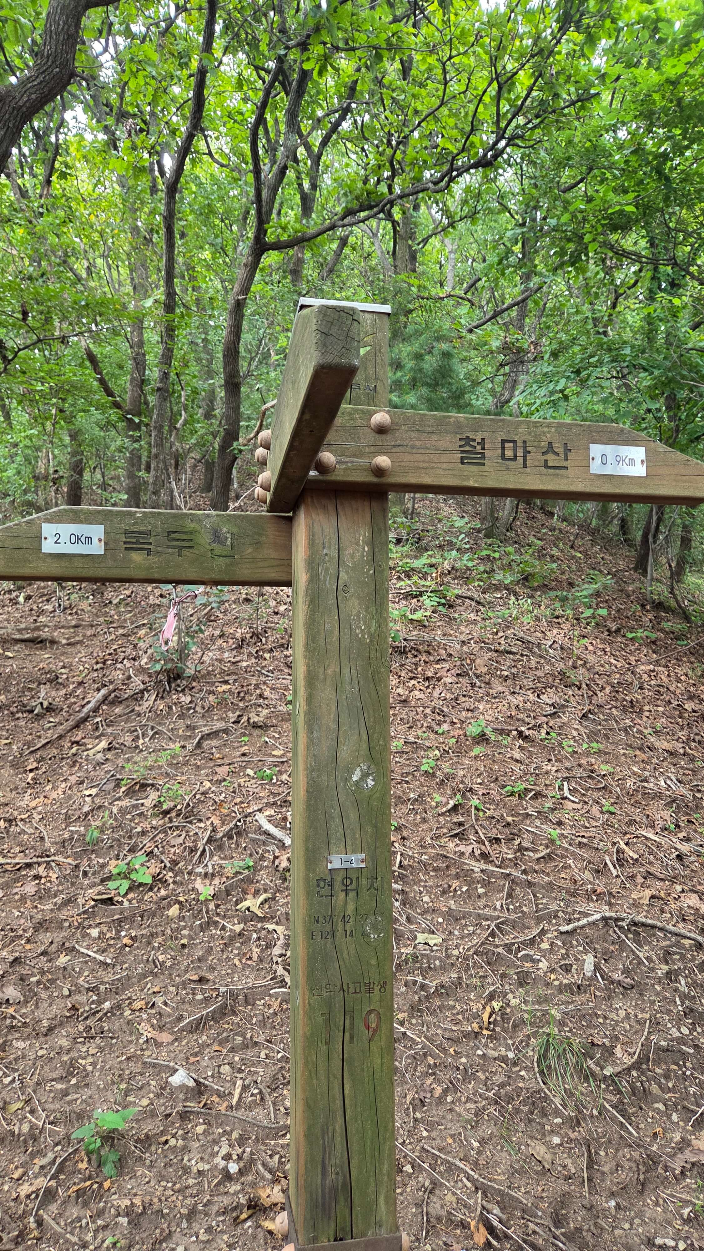 한참을 지루하게 걷다 달리다 하면 철마산-복두산 갈림길에 다다른다. 철마산 정상을 찍고 와서 복두산으로 하산할 것이다. 철마산 정상까지 900m 라고 되어 있는데 눈 앞에 보이는 봉우리의 경사도가 보통이 아니다. 그래도 정상까지만 가면 내려갈 일만 남았으니 열심히 올라간다. 철마산 정상에서 마지막 휴식을 취하고 남은 약 4.5 km의 하산길을 내달려 내려간다.
