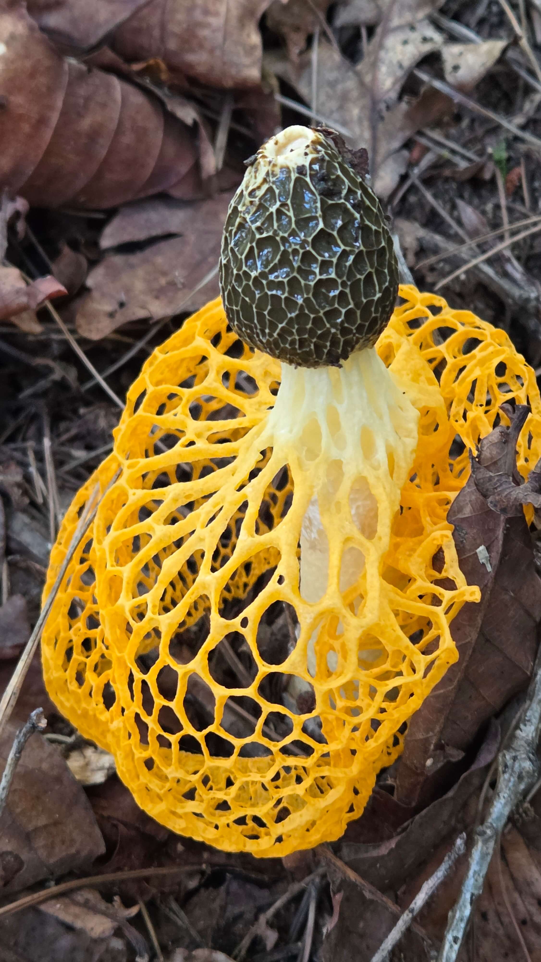 ▲ 수리봉 오르는 길에 노랑망태버섯이 눈길을 끈다.