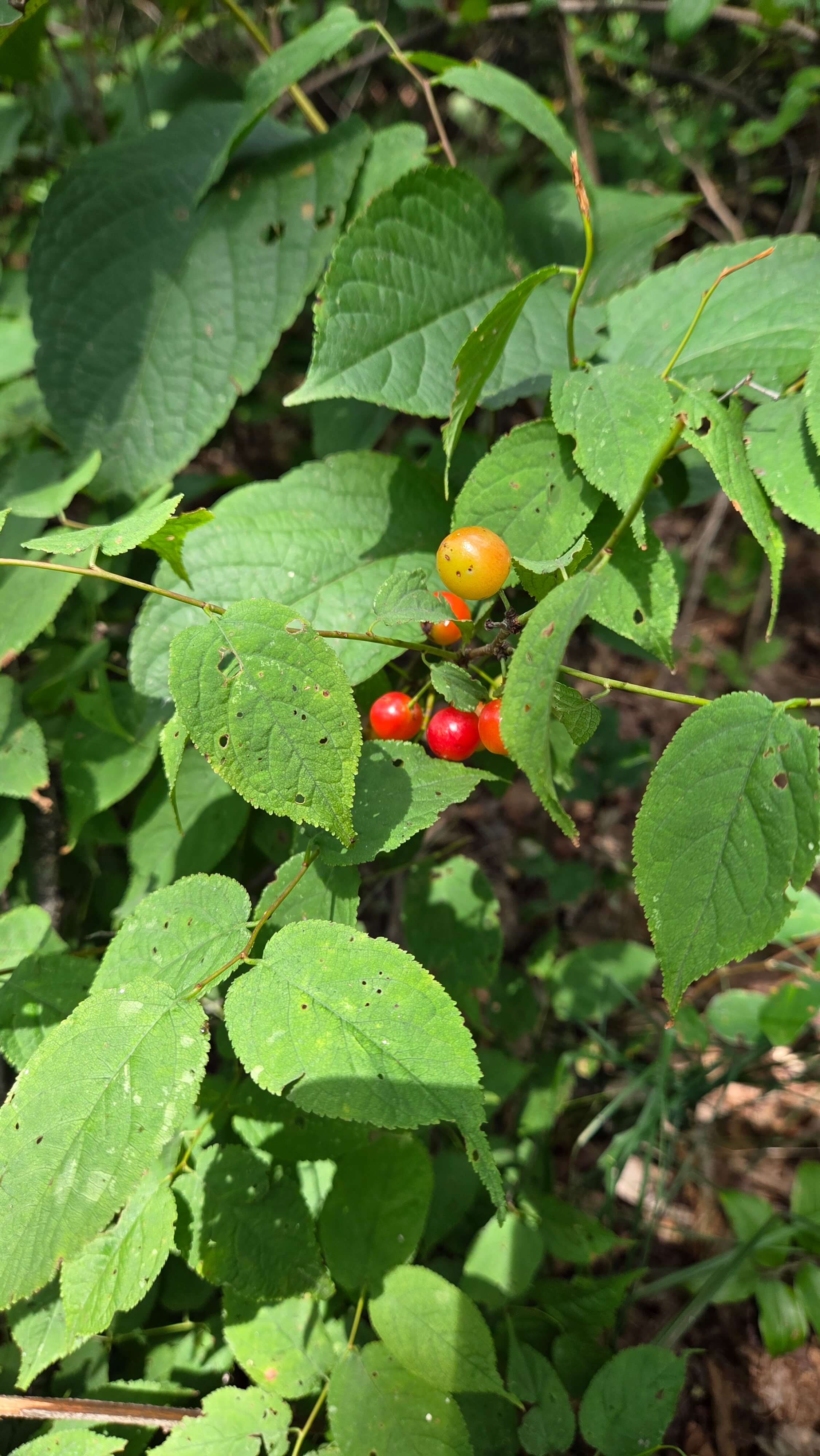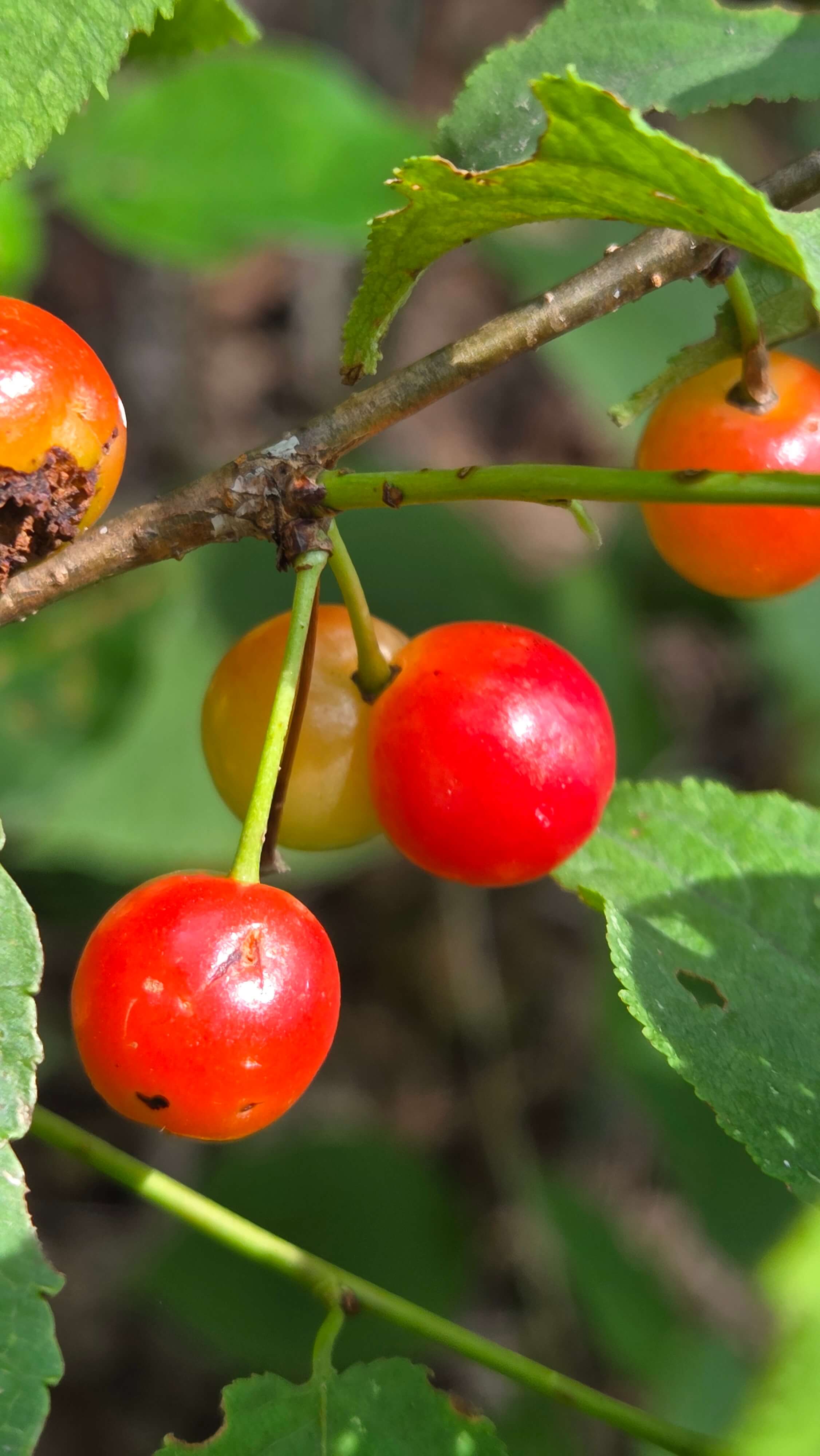 ▲ 앵두와 많이 닮은 이스라지 열매가 빨갛게 익어가고 있다. 그 중에 가장 붉은 놈을 하나 따서 먹어보니 신맛 밖에 없다.