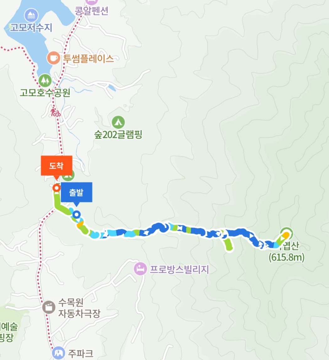 - 산행경로 : 고모저수지 근처 모 식당 - 죽엽산 정상 - 원점