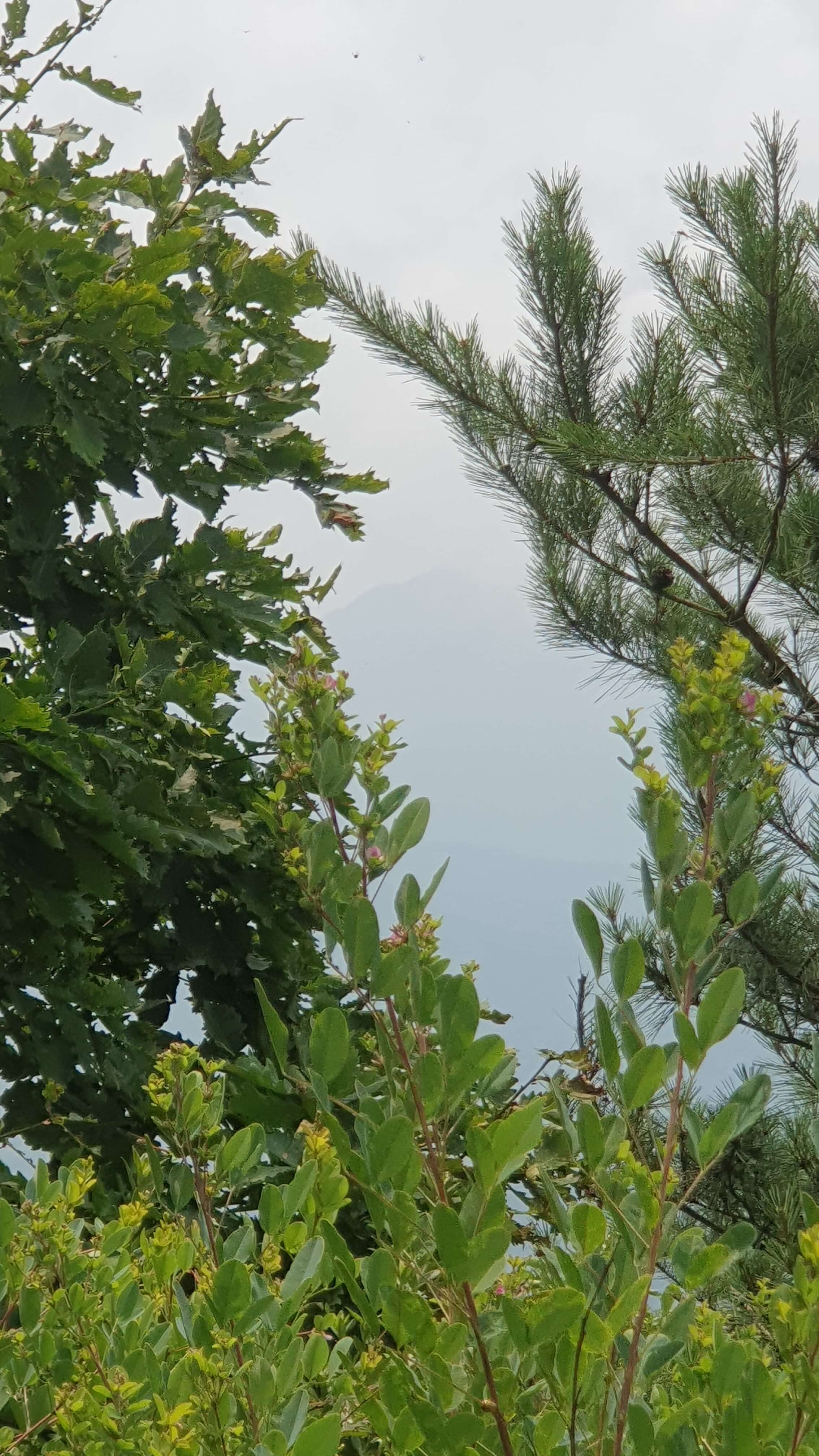 정상이다. 사방이 나무들로 막혀 있다. 나무들 틈새로 안개에 가려 희뿌옇게 보이는 저 봉우리가 방향, 거리, 높이를 고려해 보면 용문산일 것이다.