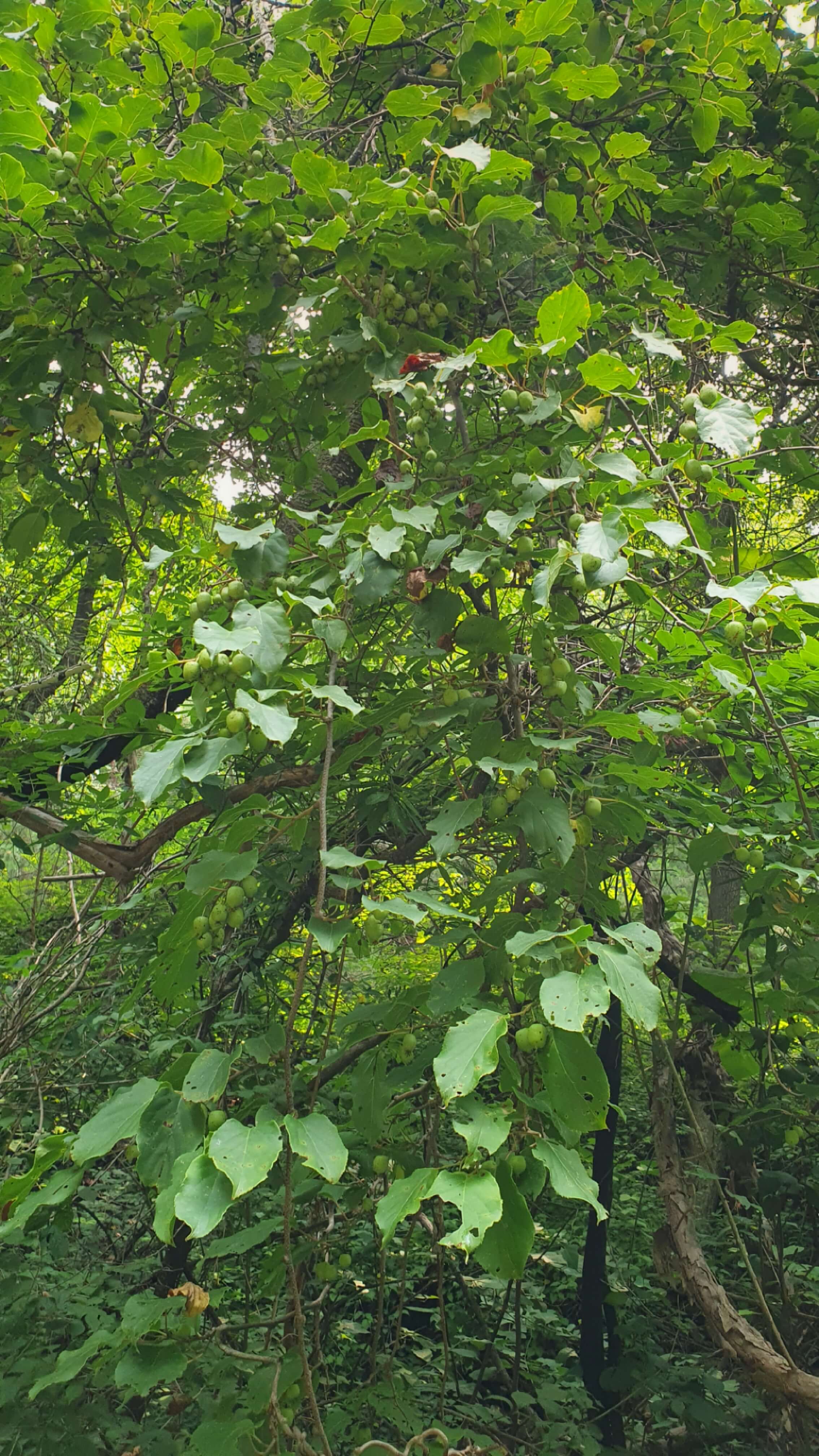 길옆 다래나무에 다래가 포도처럼 주렁주렁 열려 있다. 한 알 따서 깨물어 보니 아직 익지 않아서 별 맛이 없다. 늦여름이 되면 말랑말랑해지면서 달콤하게 익을 것이다.