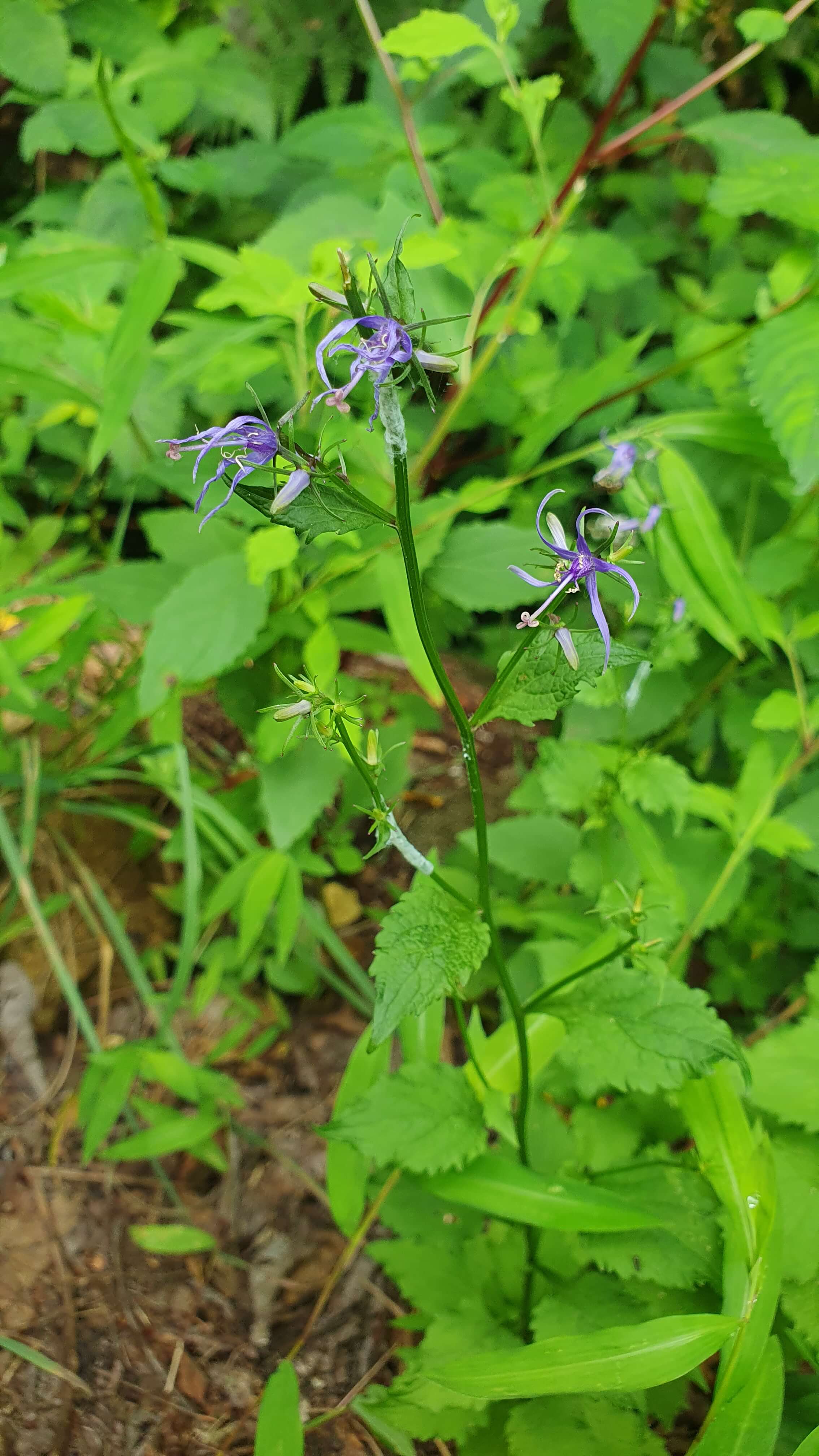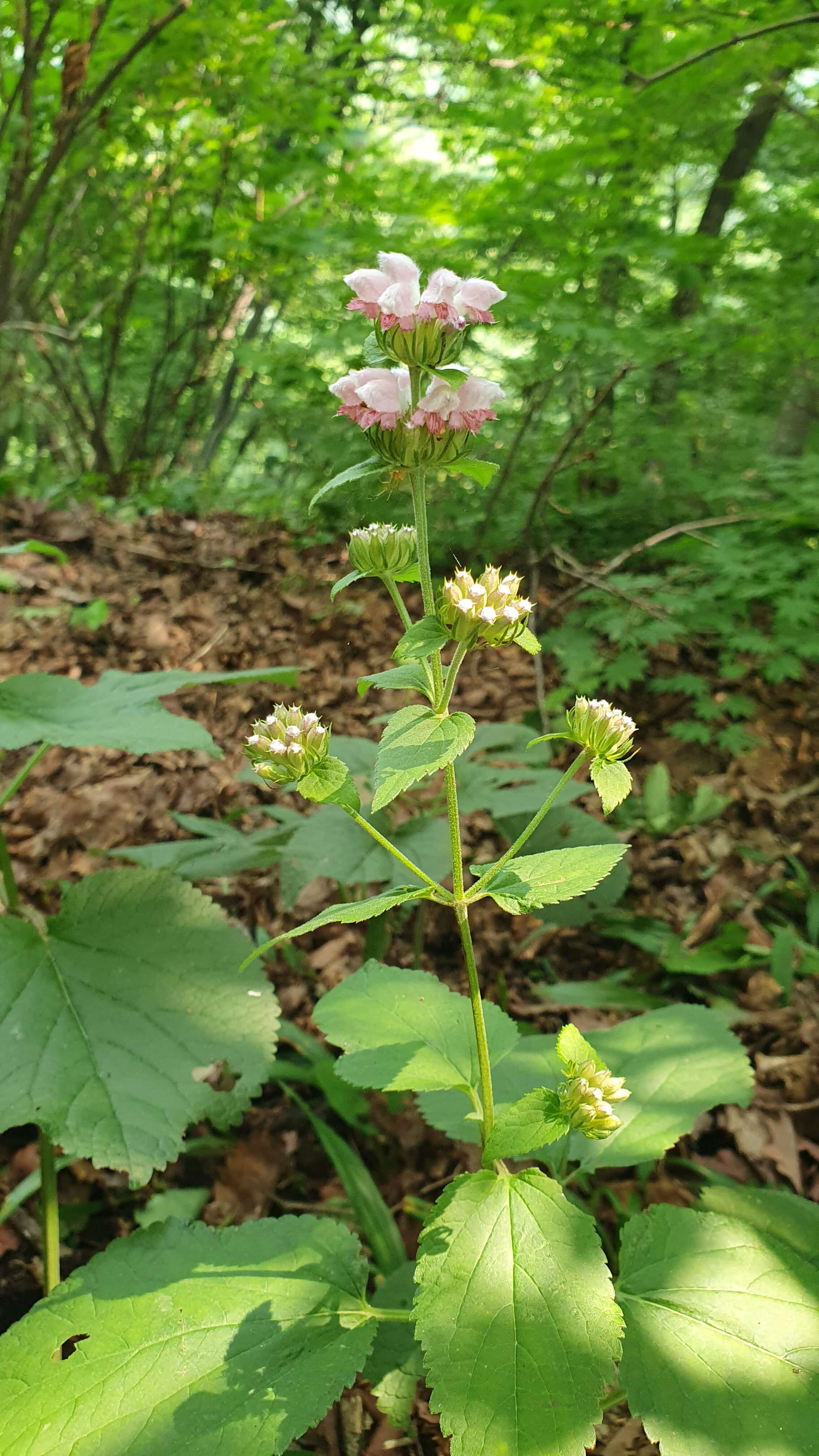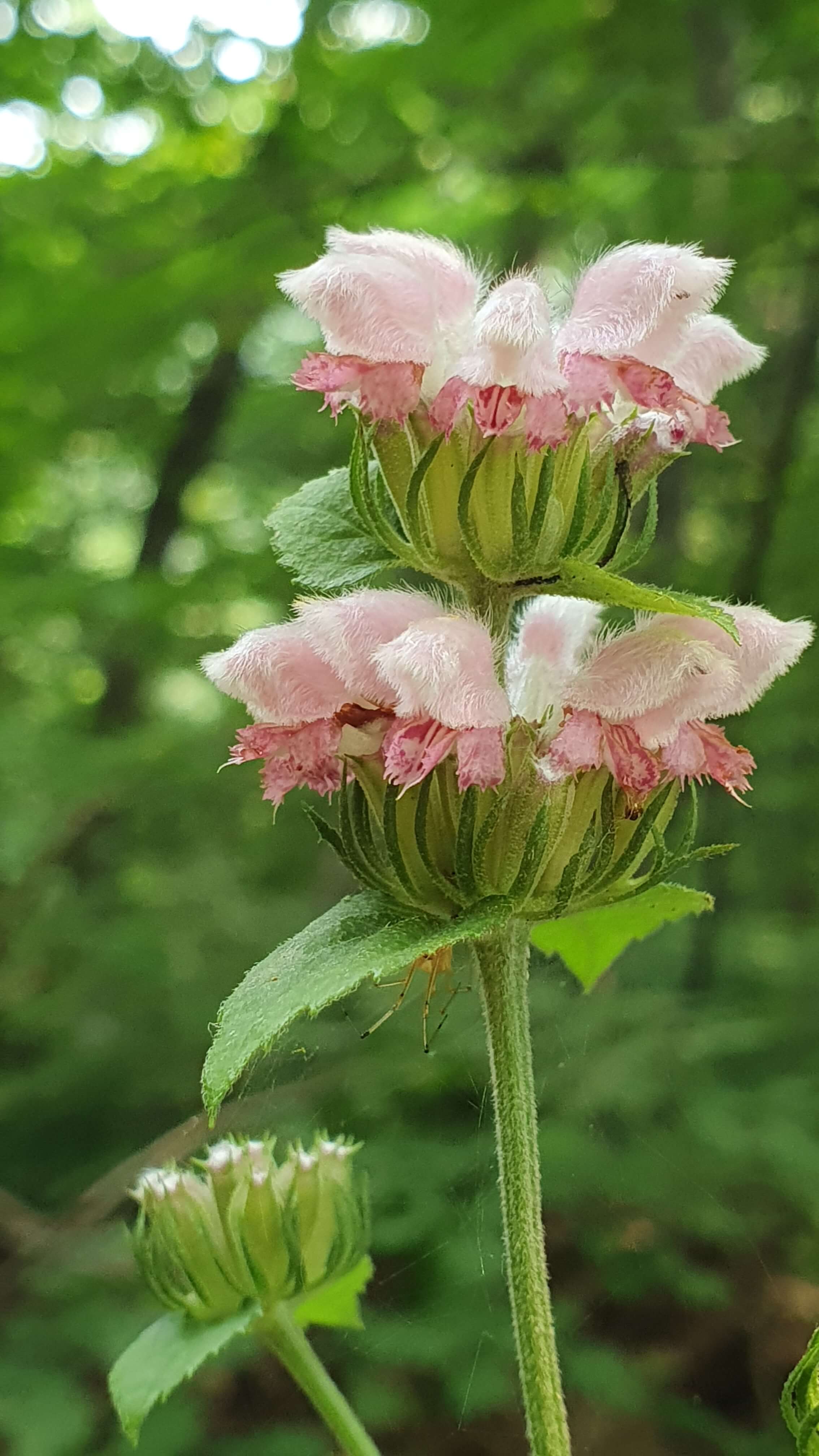 등산로 초입 길 옆 습지에 꽃 모양이 특이한 영아자가 자주색 꽃을 피우고 있다. 강원도에서는 미나리싹이라고 하고 산나물로 인기가 있었다고 한다.