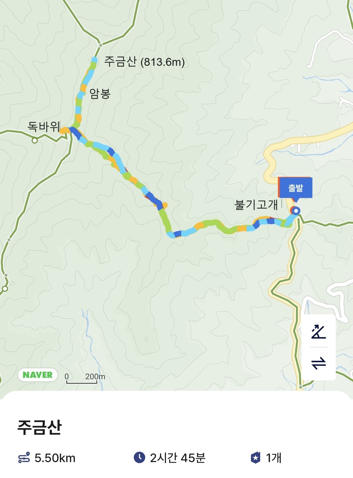 산행코스 : 불기고개 쉼터 - 갈림길 - 암봉 - 정상 - 암봉 - 갈림길 - 독바위 - 불기고개 원점 회귀