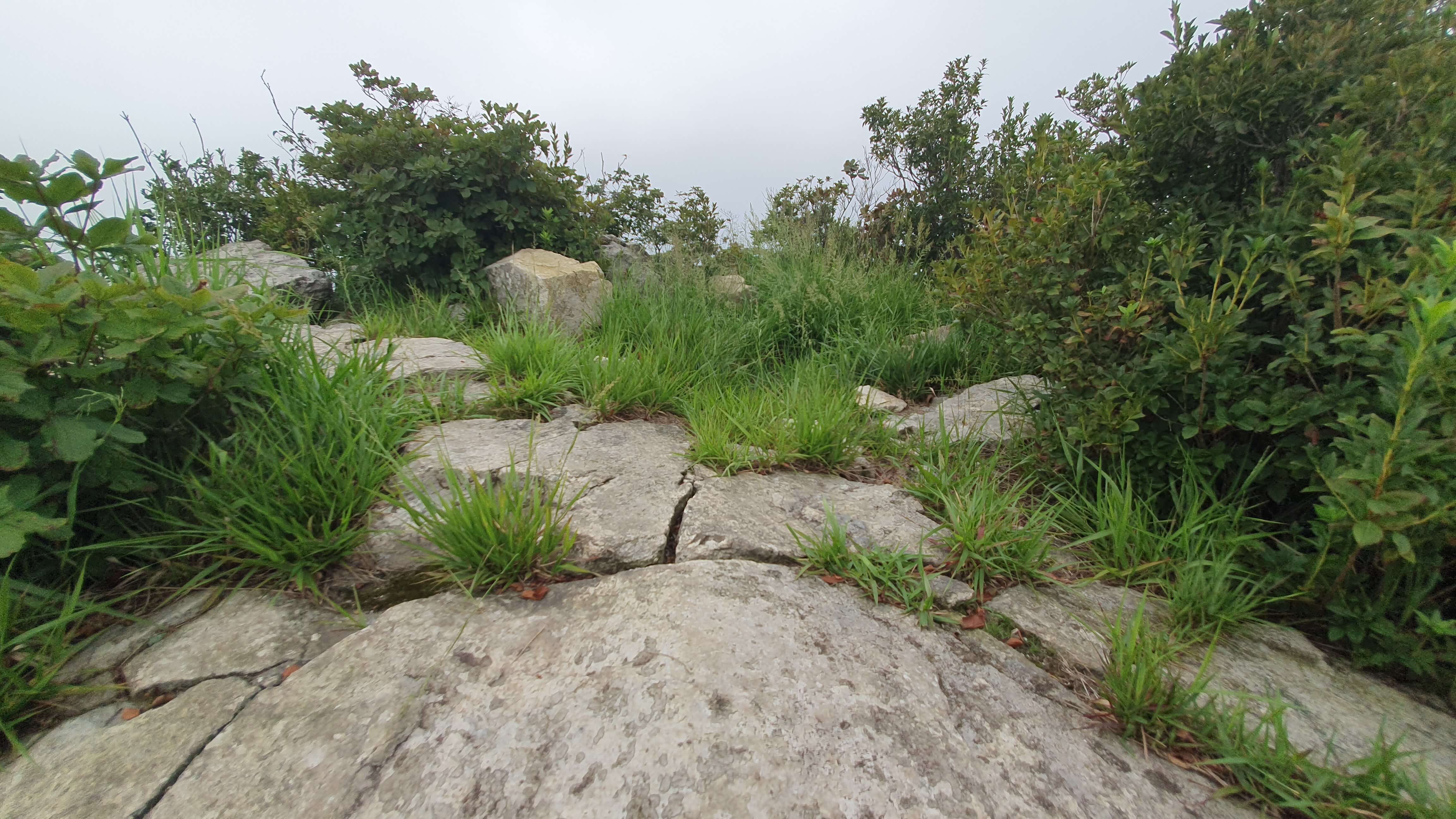 그냥 평지이고 우거진 나무들로 주위 시야가 막혀 있어서 정상이라는 느낌이 전혀 없다. 어지러이 늘부러져 있는 표지석과 안내표지판만이 "여기가 정상 맞다니까" 라고 강변하는 듯하다.
