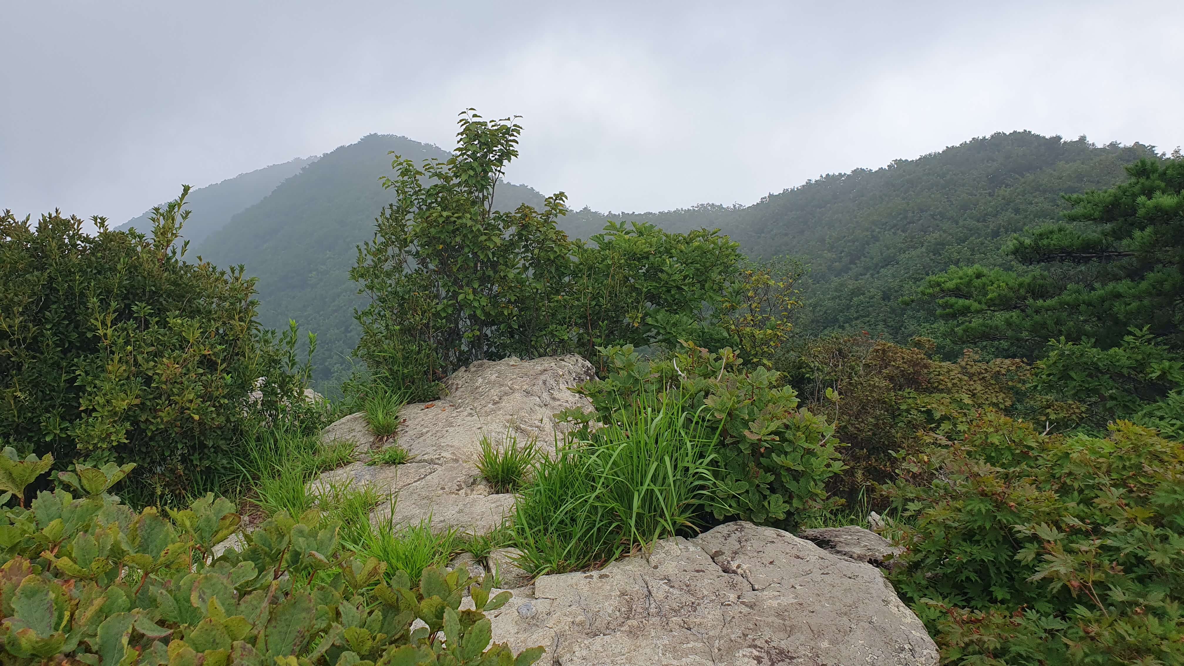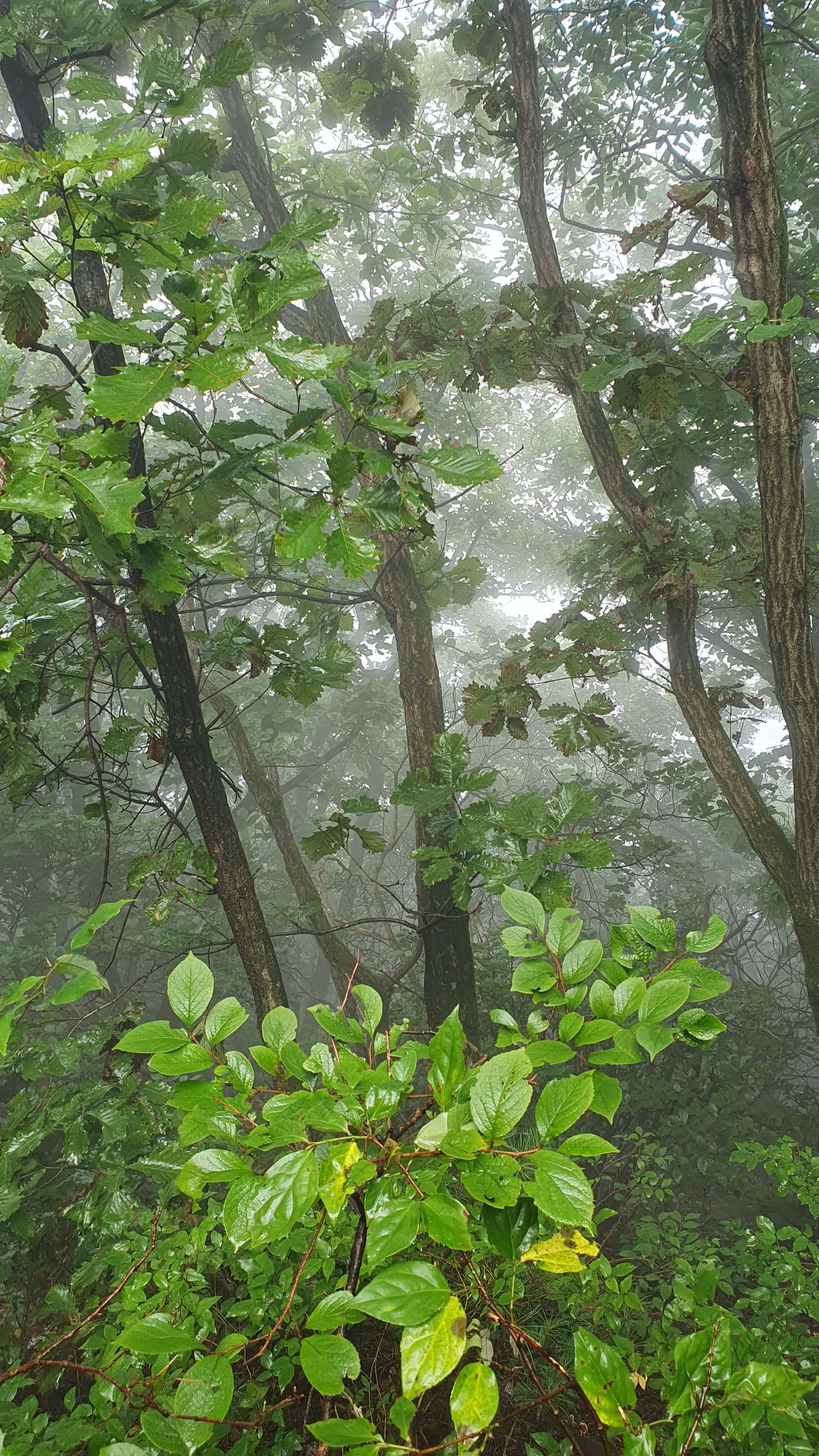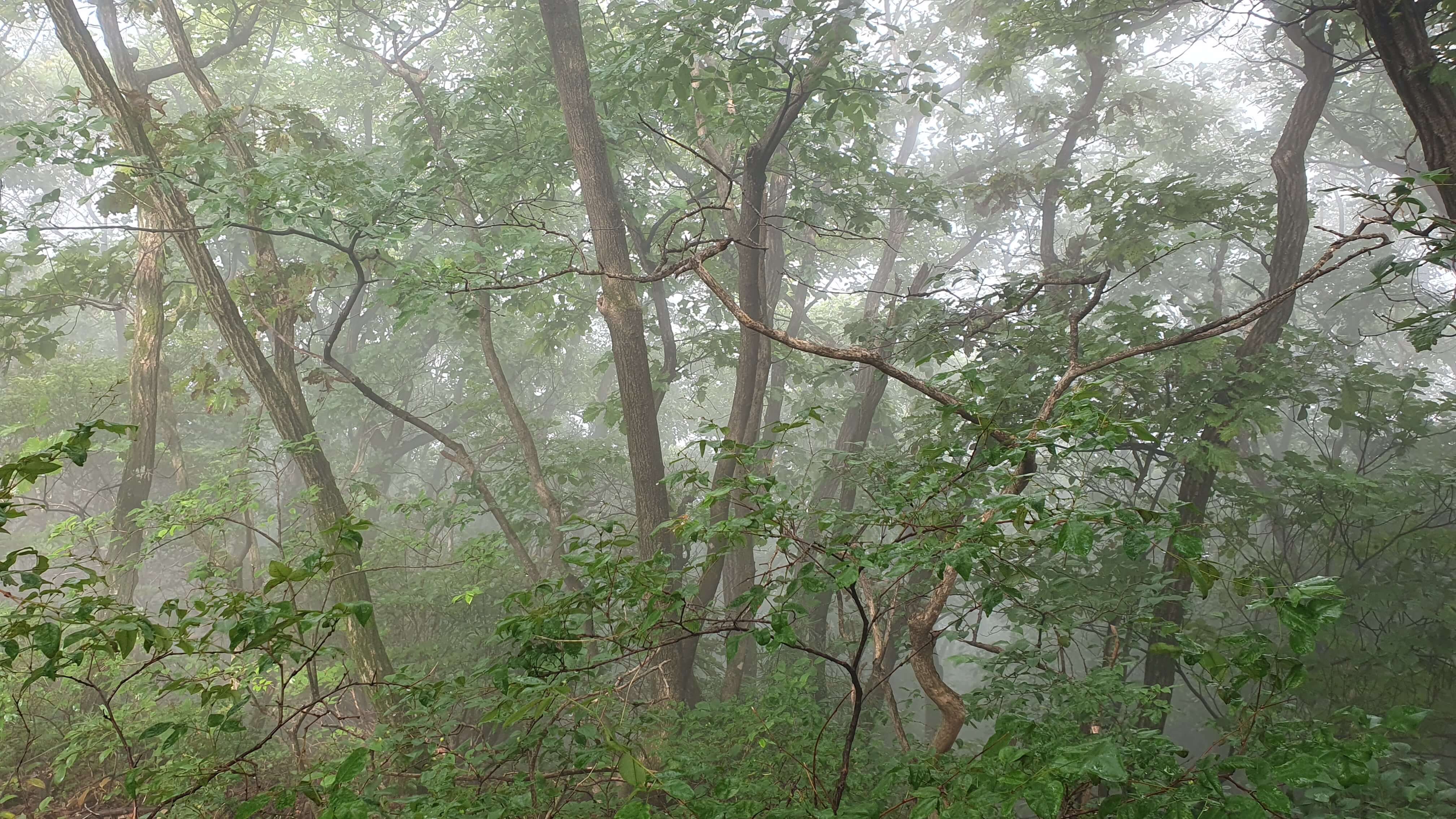 장마기간은 끝났다고 하는데 수시로 소나기가 내린다. 산행 시작 직전까지도 비가 내린듯 나뭇잎들은 빗물에 젖어 있고, 주위는 안개로 자욱하다. 다행히 비는 내리지 않는다. 기온이 높고 습하지만 나무들이 우거져 아주 덥다고 느껴지지는 않는다. 30도가 넘는 날씨에 왜 산을 가느냐고 하지만 같은 고온이더라도 도시에서와 달리 산에서는 상쾌한 공기와 나무 그늘 , 살랑이는 바람을 맞으면 더위가 불편하지 않다.