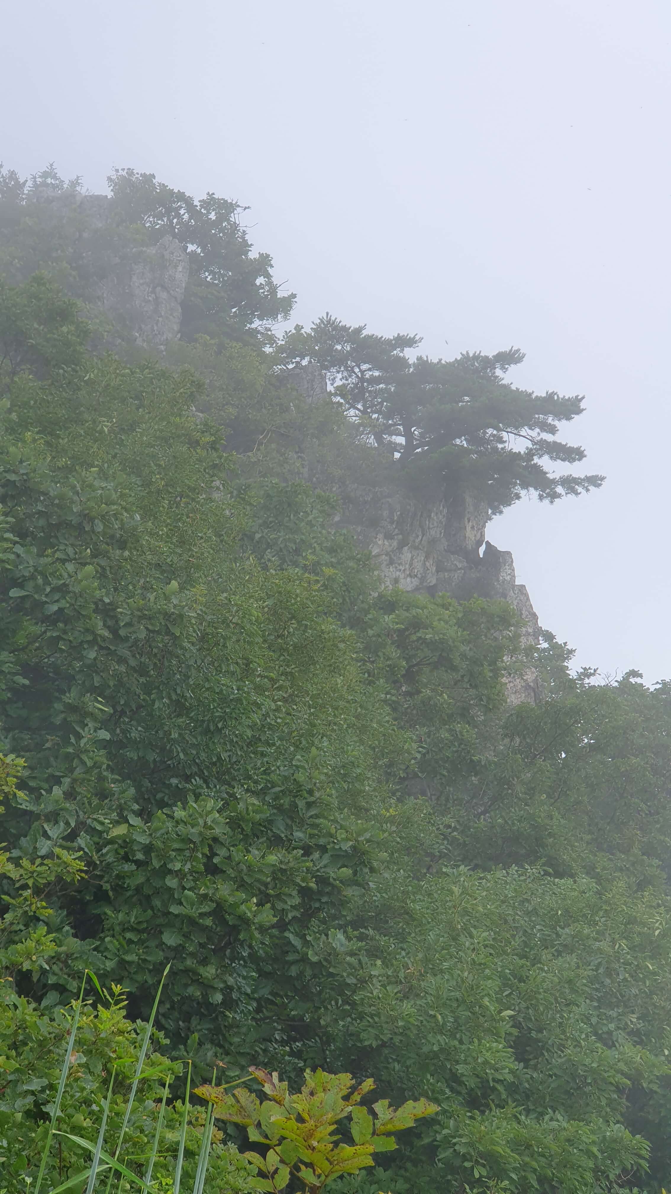 안개속에서도 몇 몇 암벽들이 눈요기를 하게 해 준다.