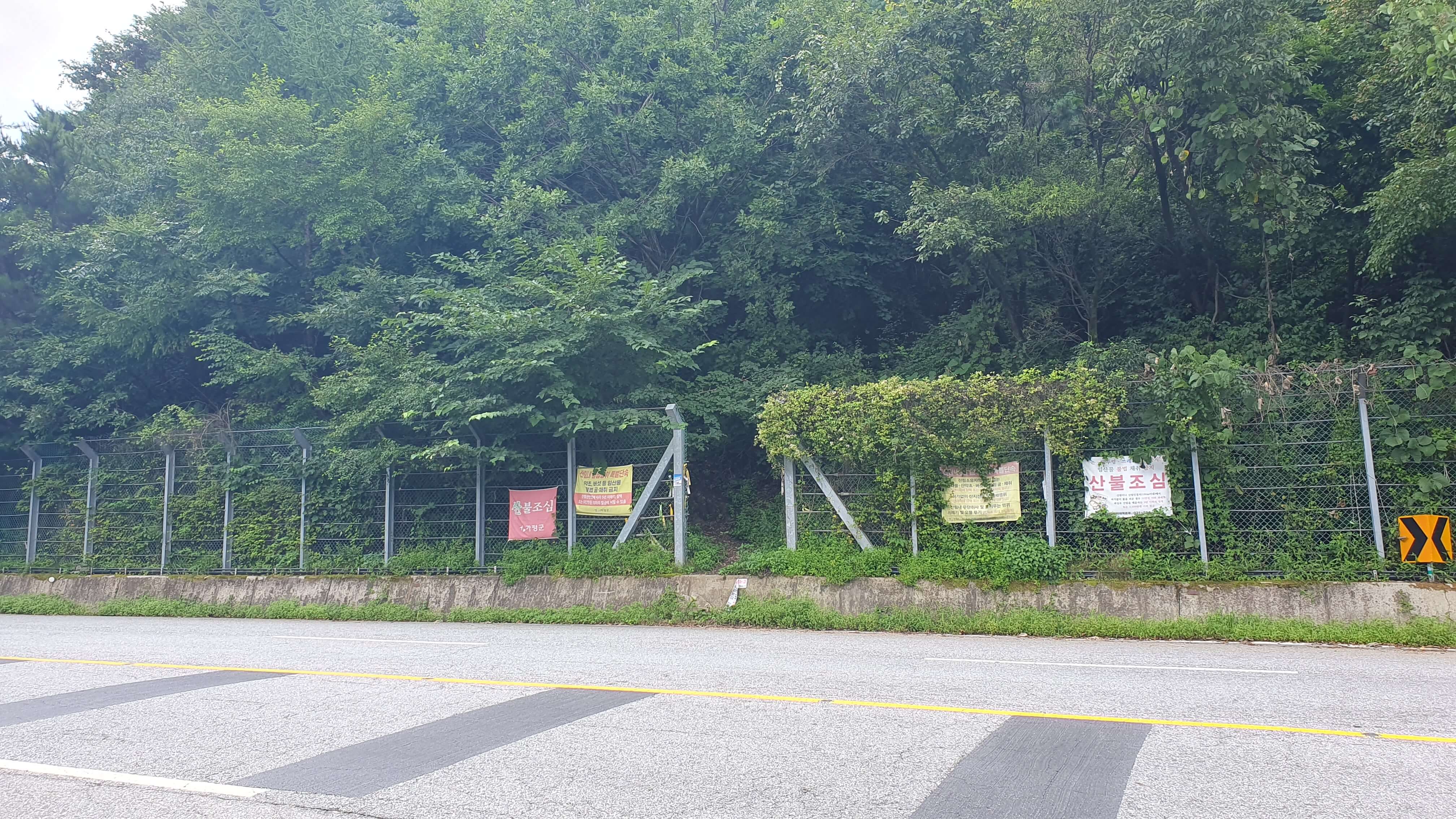 길 건너 보이는 철망 사이로 등산로가 숨겨져 있다. 길이 있을까 싶은데 발을 들이면 뻥 뚫린 길이 뚜렷하게 보인다.