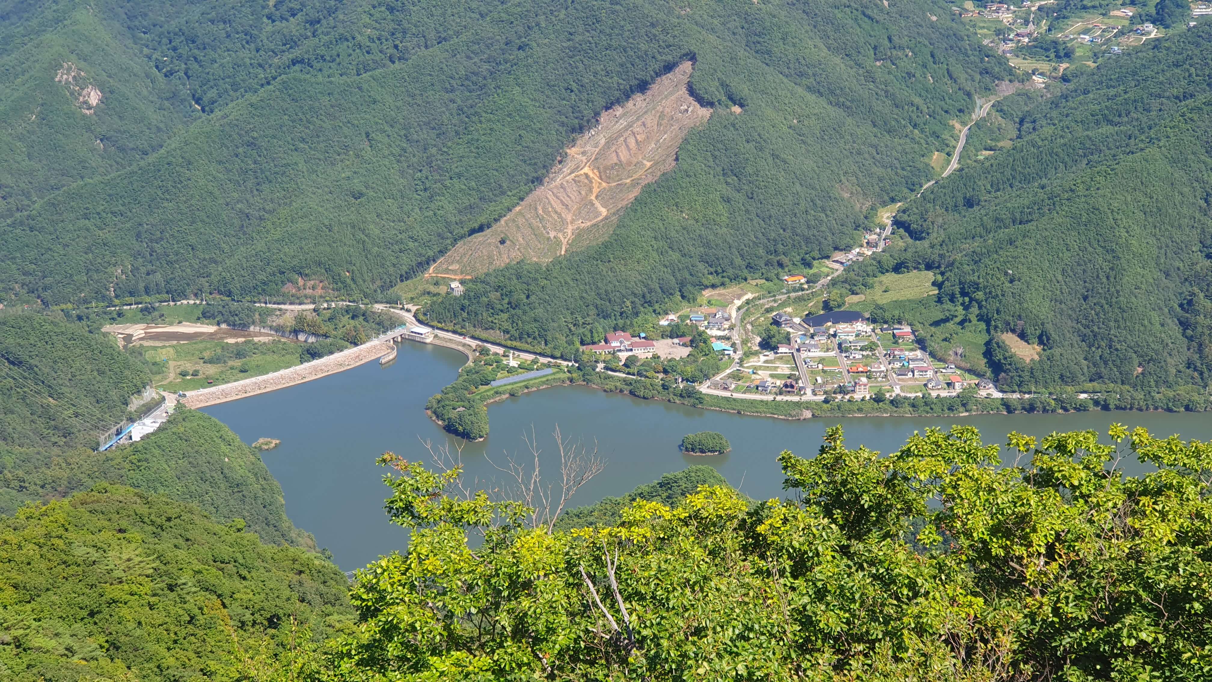 꼬부랑길을 운전해 올라 가던 중 갑자기 정면의 시야를 가로막는 거대한 장벽에 잠시 당황한다. 양수발전소 상부댐인 적상호 댐이다. 금방이라도 둑이 터져 물폭탄이 덮칠 것만 같아서 가속페달을 밟는 발에 힘이 들어 간다.