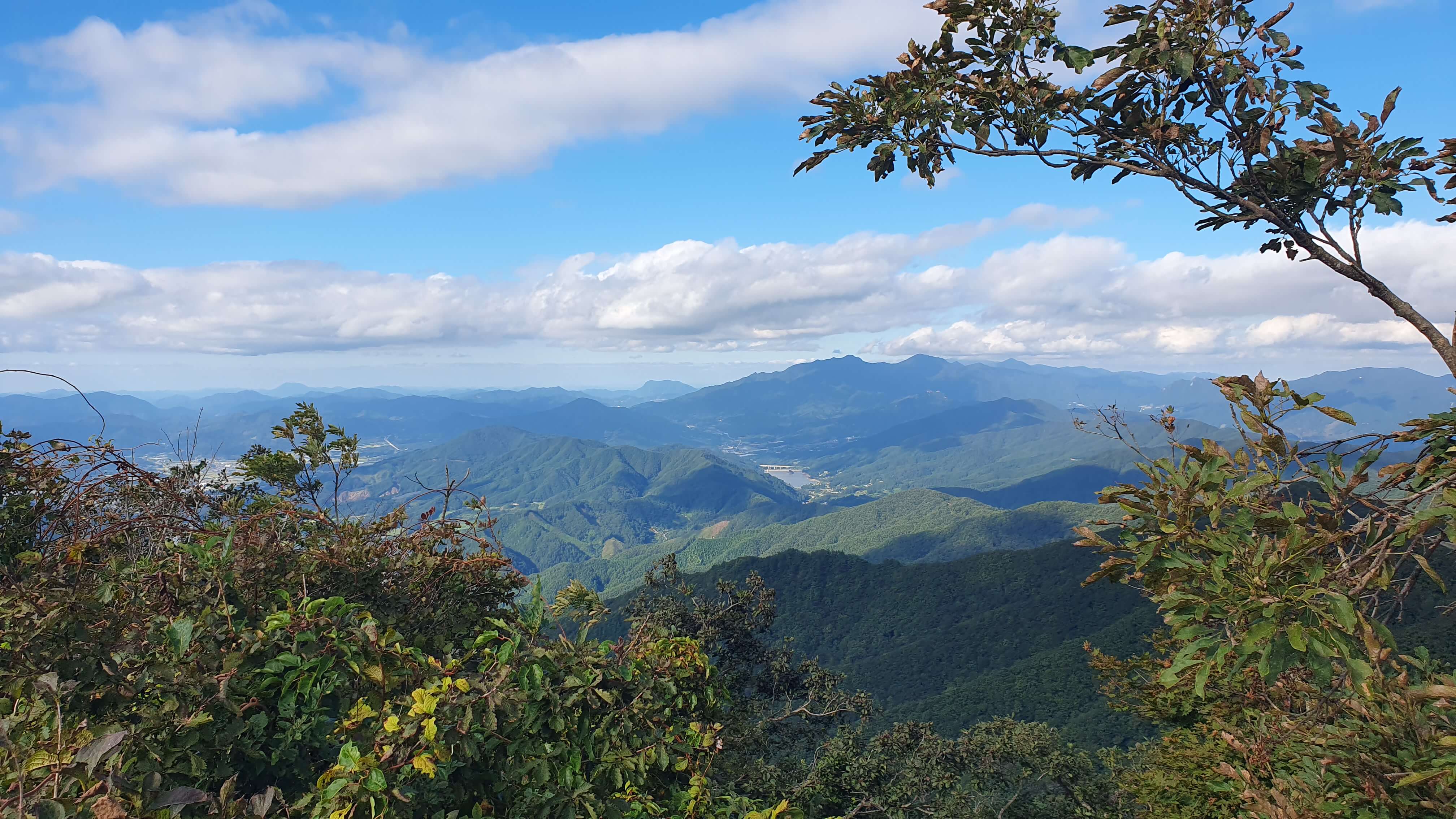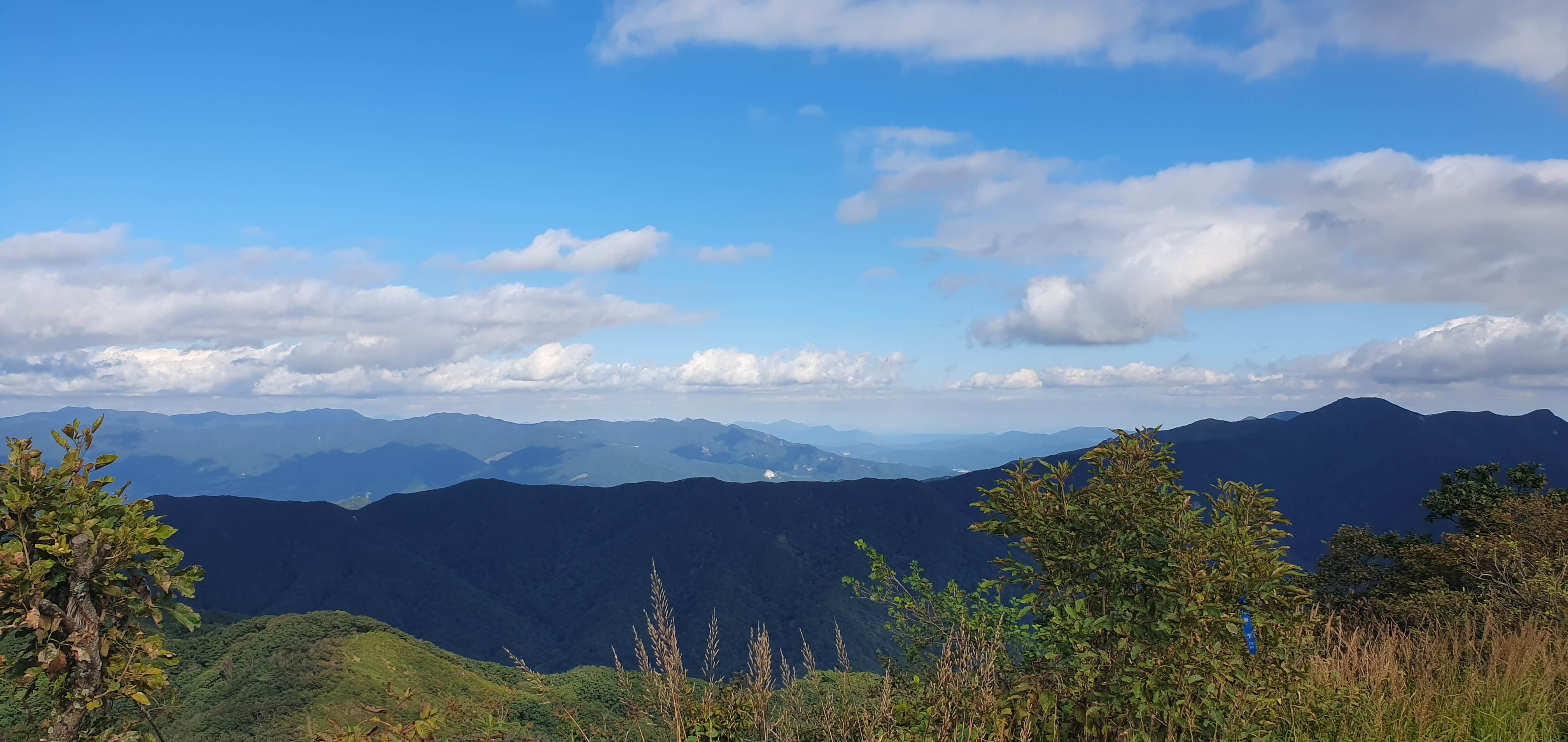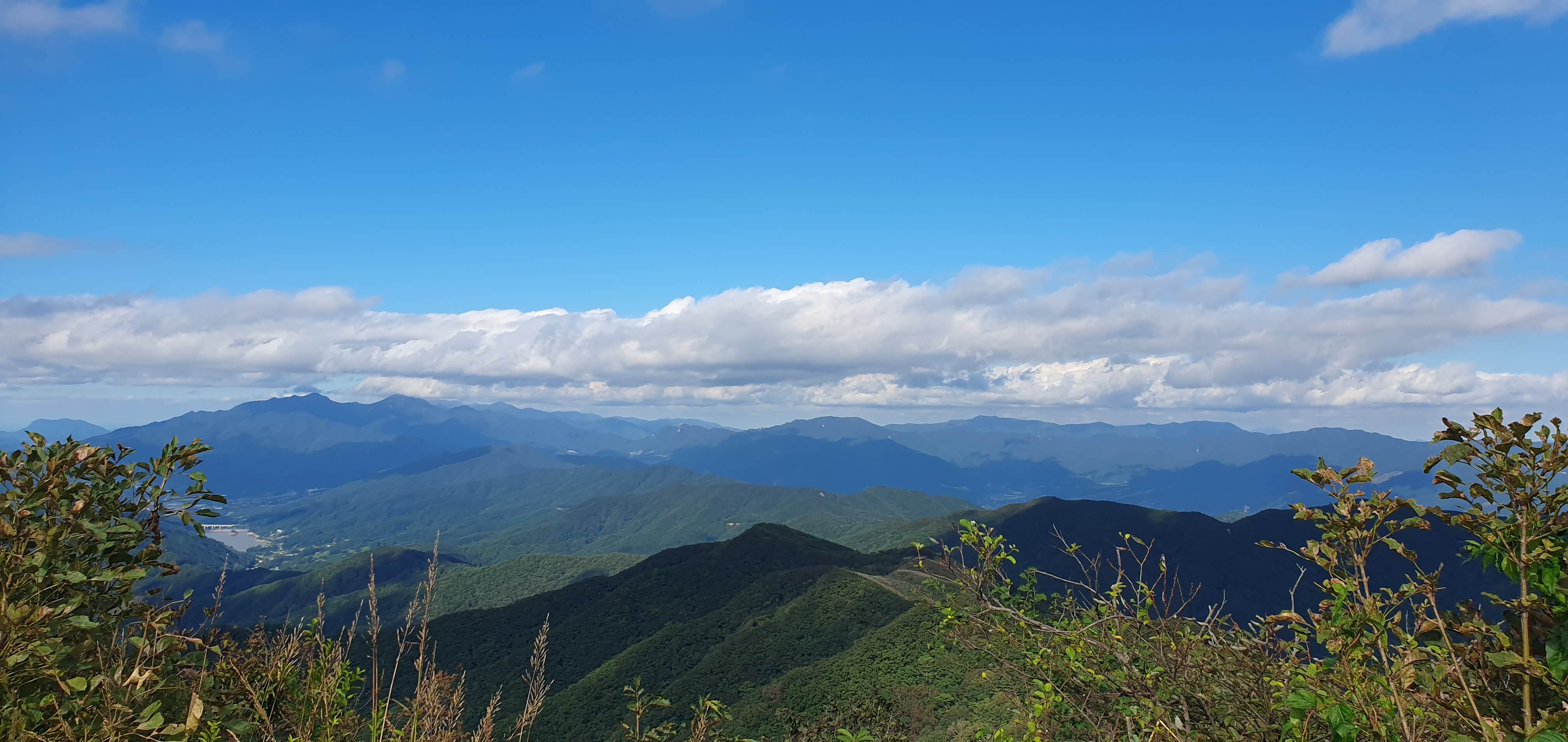 정상은 사방이 트여 있어 산줄기들이 넘실대는 시원한 풍경을 감상할 수 있다.