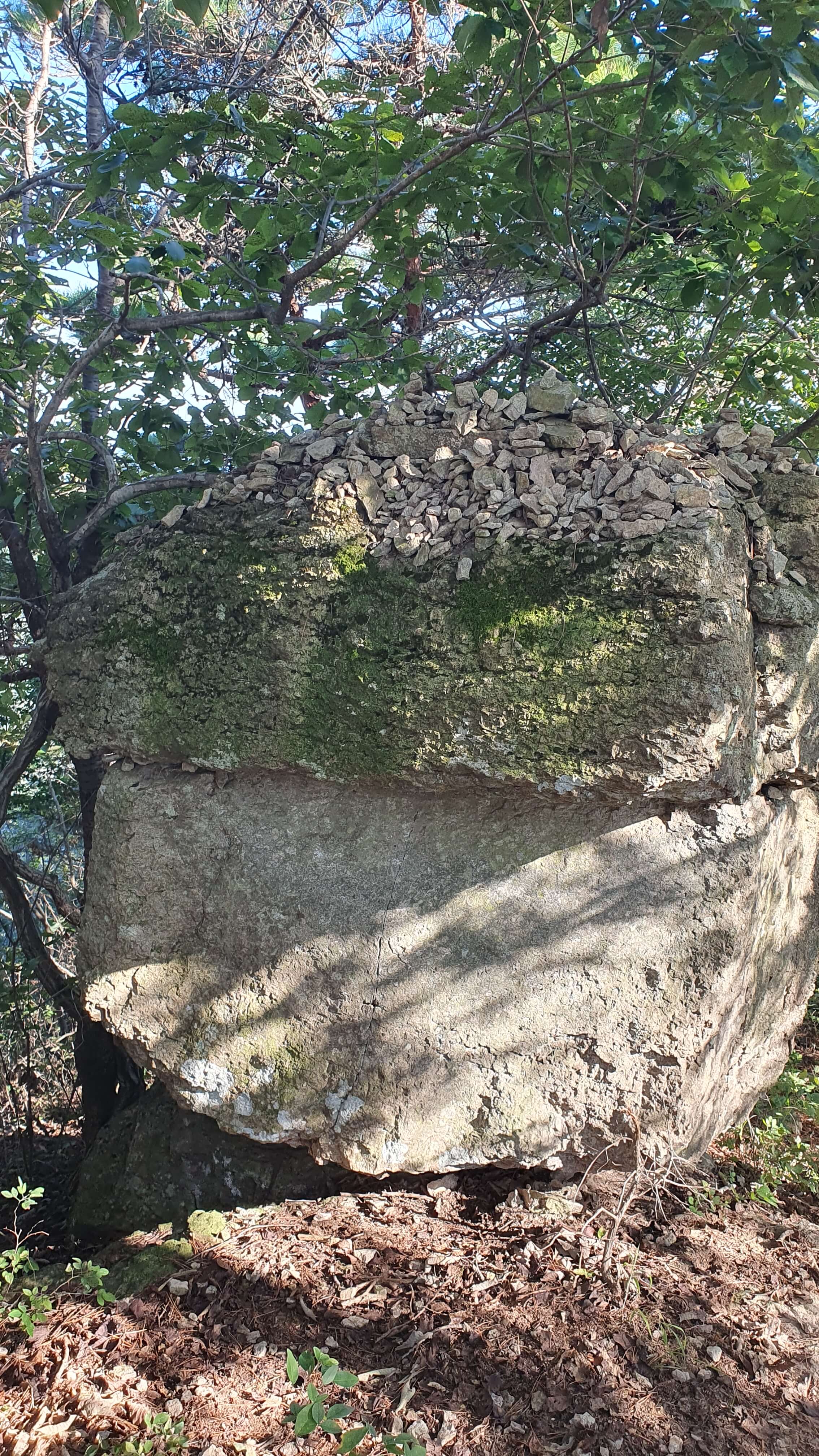 바위 두 개를 누군가 포개놓은 듯하다. 배맨바위, 포갠바위 등 작명이 순수하다.