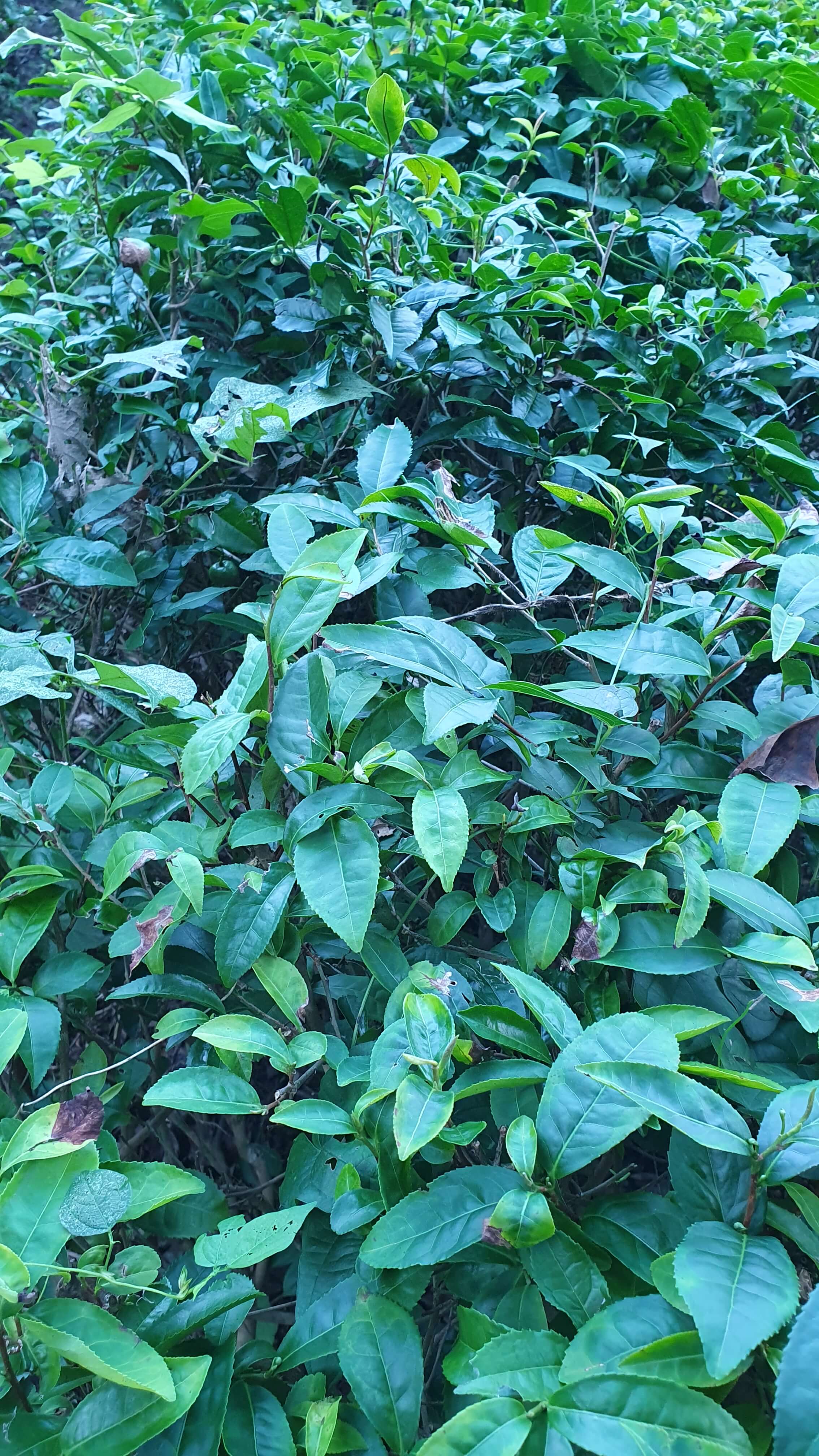 하산하여 선운사 옆을 지나다 차 밭을 만난다. 열매가 열려 있다.