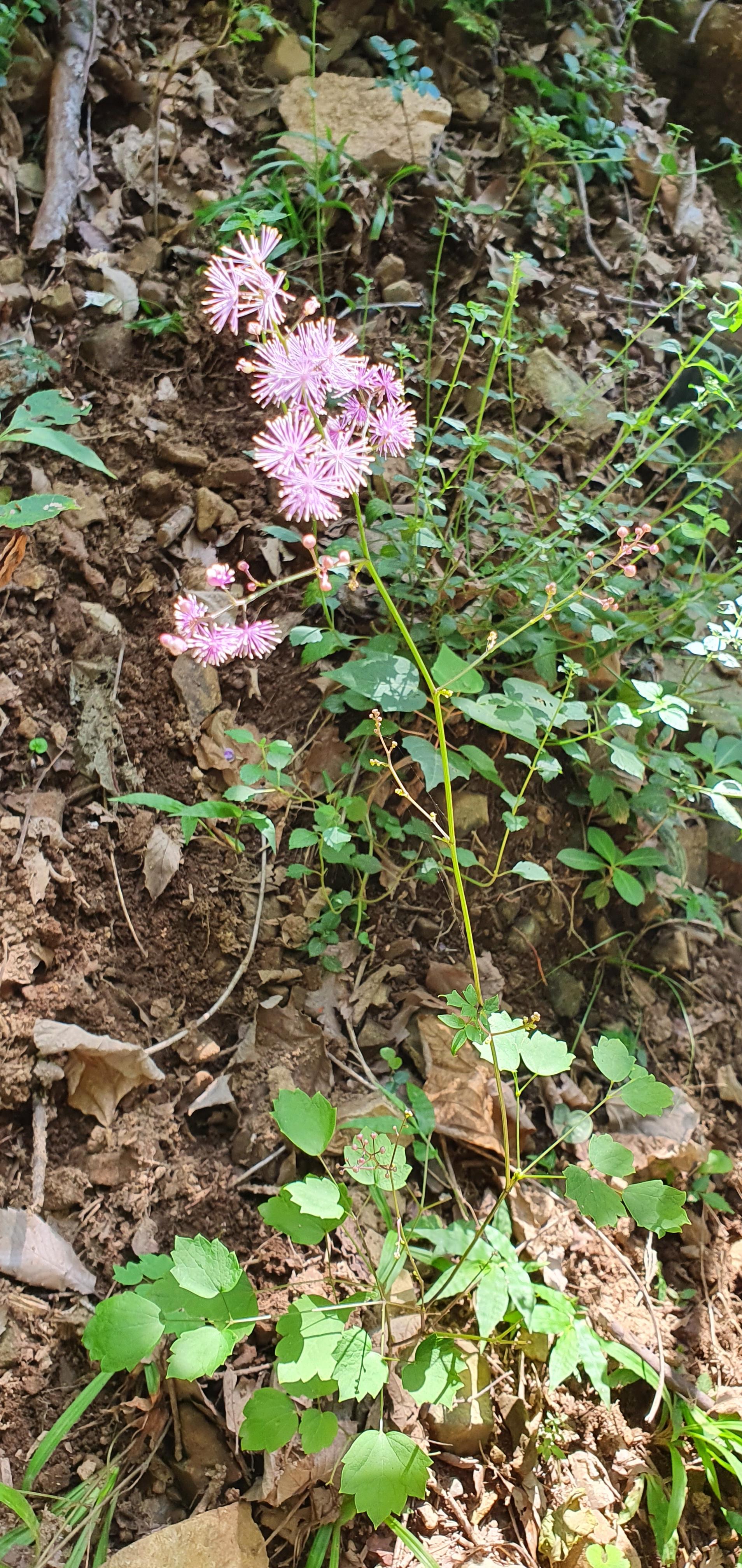 많은 꿩의다리 종류 중에서 산꿩의 다리. 연잎꿩의다리와 잎 모양이 다르고, 은꿩의다리와 색깔, 잎 모양이 다르다.