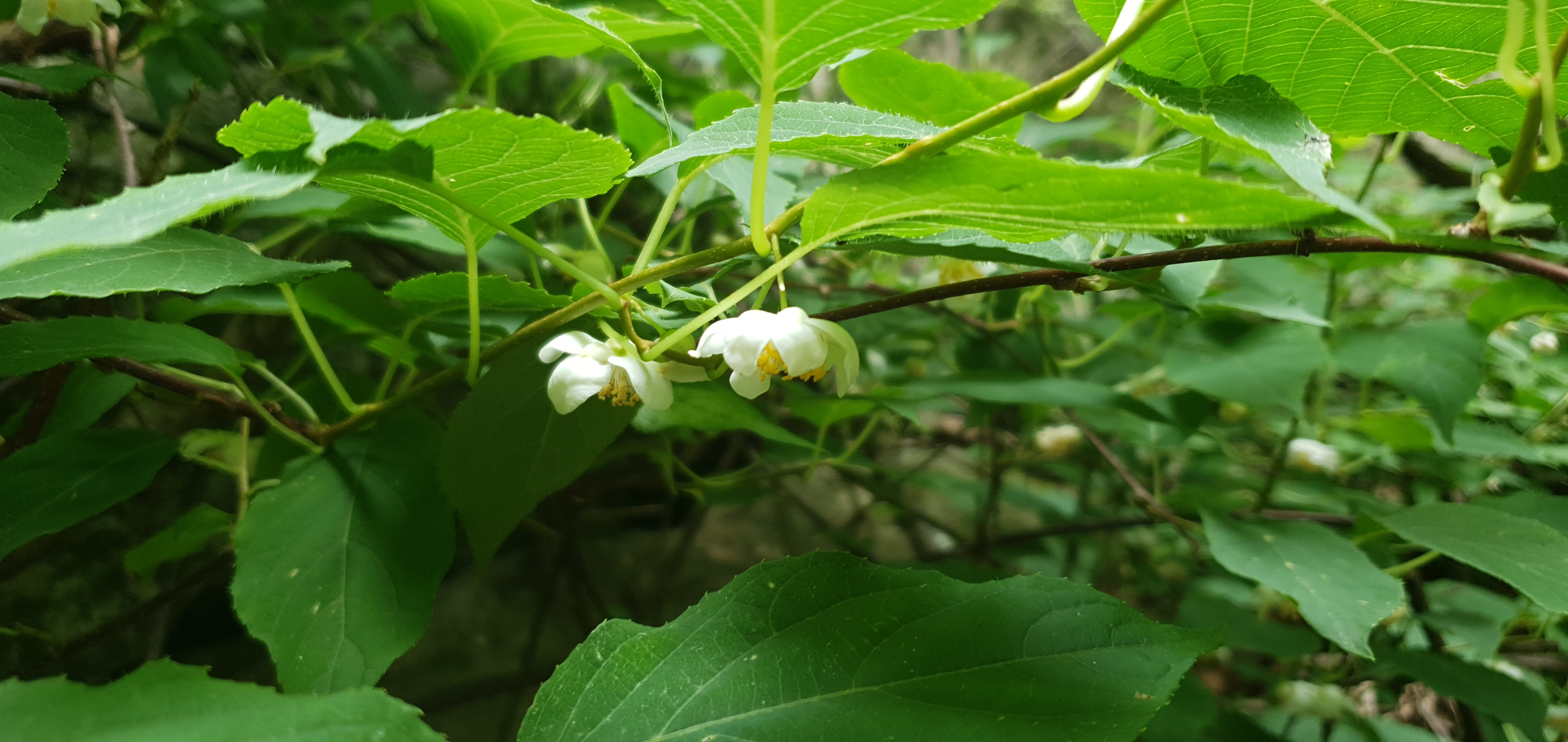 사위질빵과 꽃이 매우 비슷한 할미밀망이다. 꽃은 사위질빵보다 조금 더 크다. 사위질빵은 잎줄기 하나에 입이 3개 붙어 있는데 반해 할미밀망은 잎이 5개 붙어 있다.