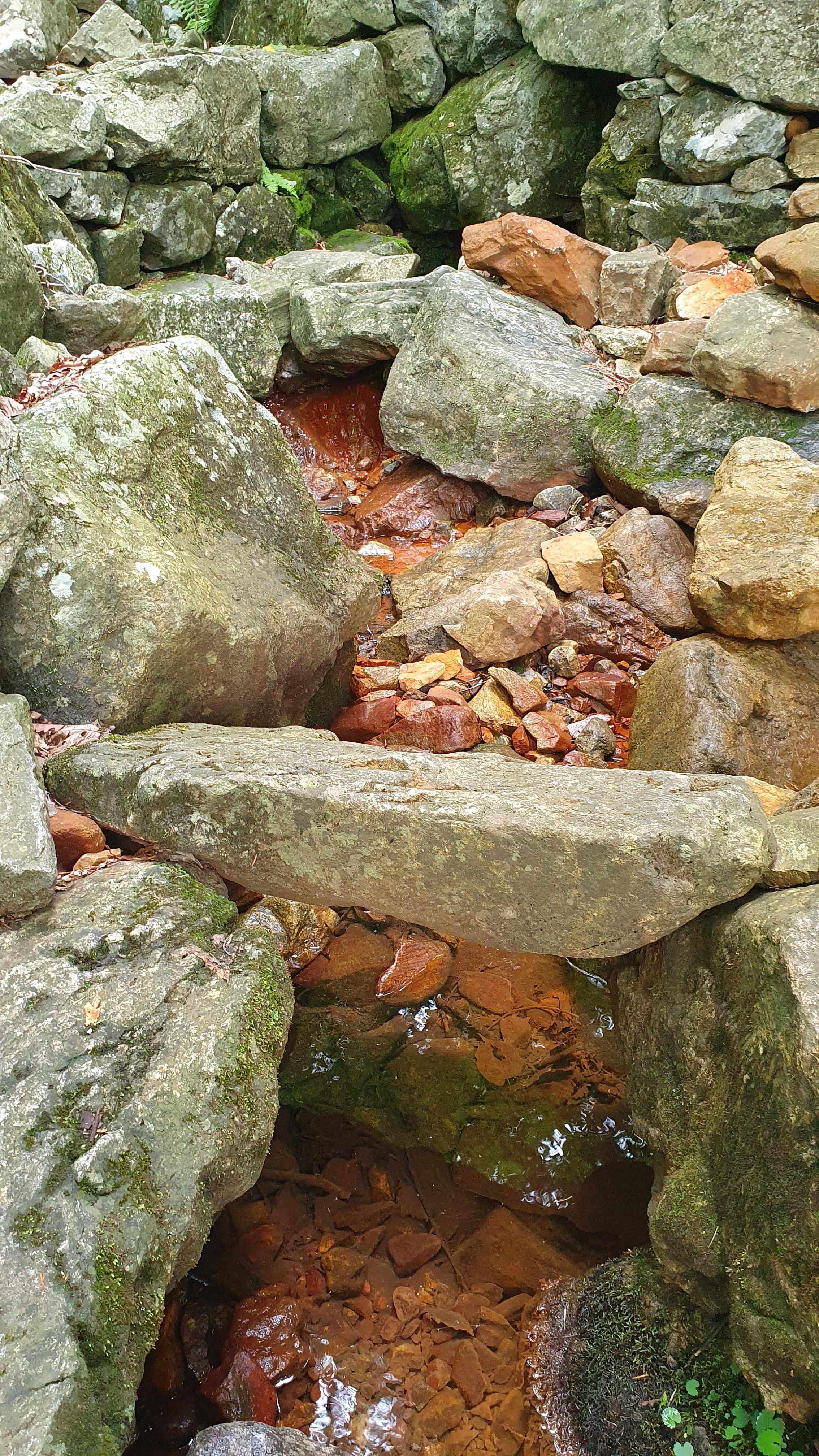 물뜨는 국자가 걸려 있으나 철분이 얼마나 많은지 물웅덩이 전체가 불그스레하고 물이 먹을만큼 청결해 보이지는 않았다.